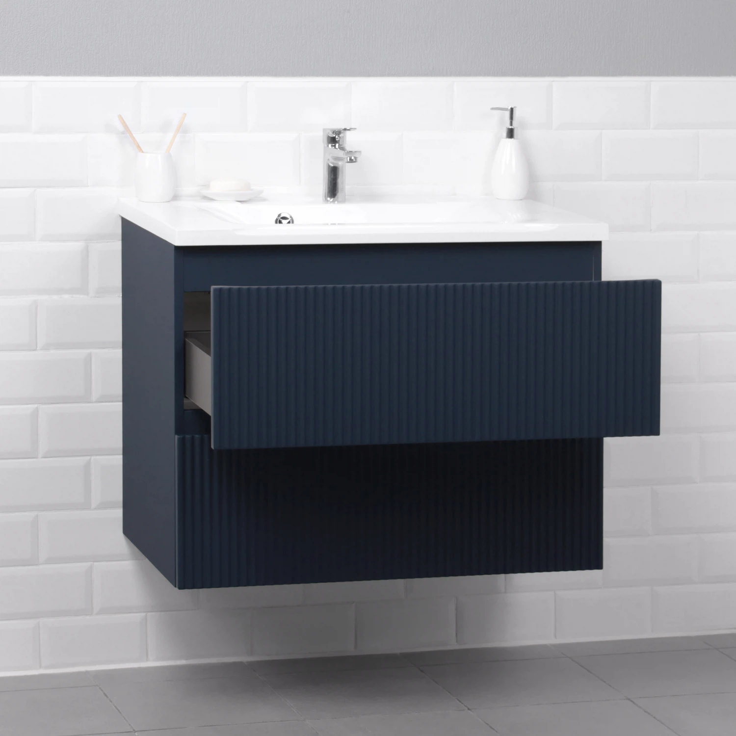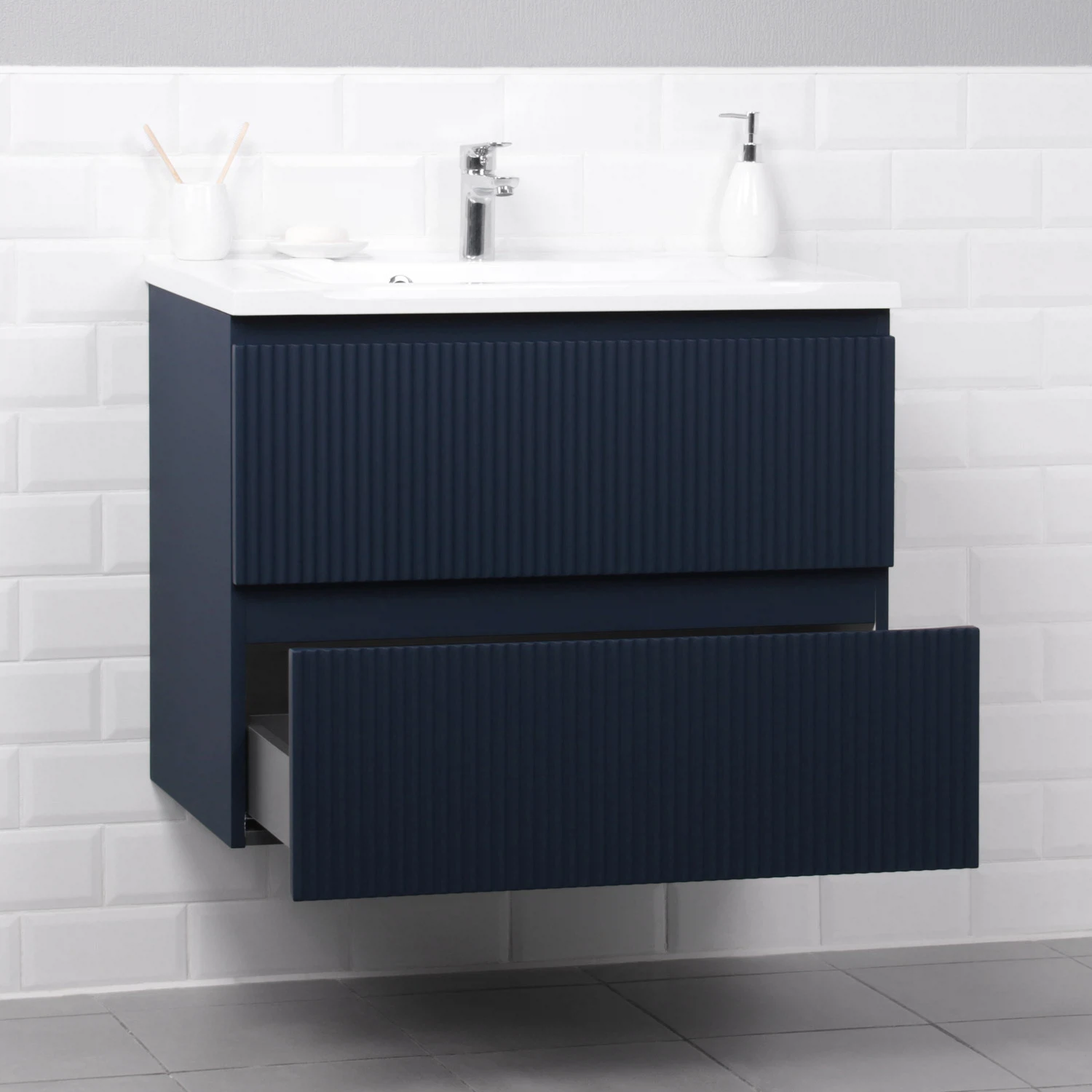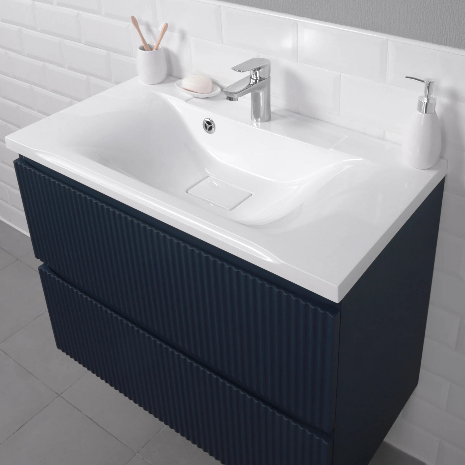 Коллекция Kate - воплотила в себе тренд на фактурные фасады. Идеальный "рубчик" - простое и стильное дизайнерское решение для декорирования фасадов - эта мебель бесспорно станет украшением современной ванной комнаты. Коллекция выполнена из МДФ и покрыта ПВХ пленкой, что делает её устойчивой к влаге, а значит долговечной. Удобные фрезерованные ручки, качественная фурнитура с доводчиками, вместительность - мы продумали все, чтобы мебель была не просто красивой, но еще и функциональной, приятной в использовании.