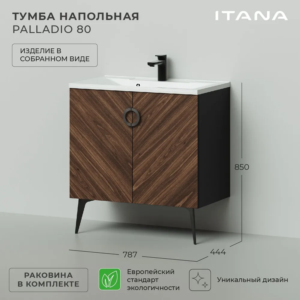 Тумба с раковиной Итана Palladio 4657792957454 80 см (дуб бурбон) напольная