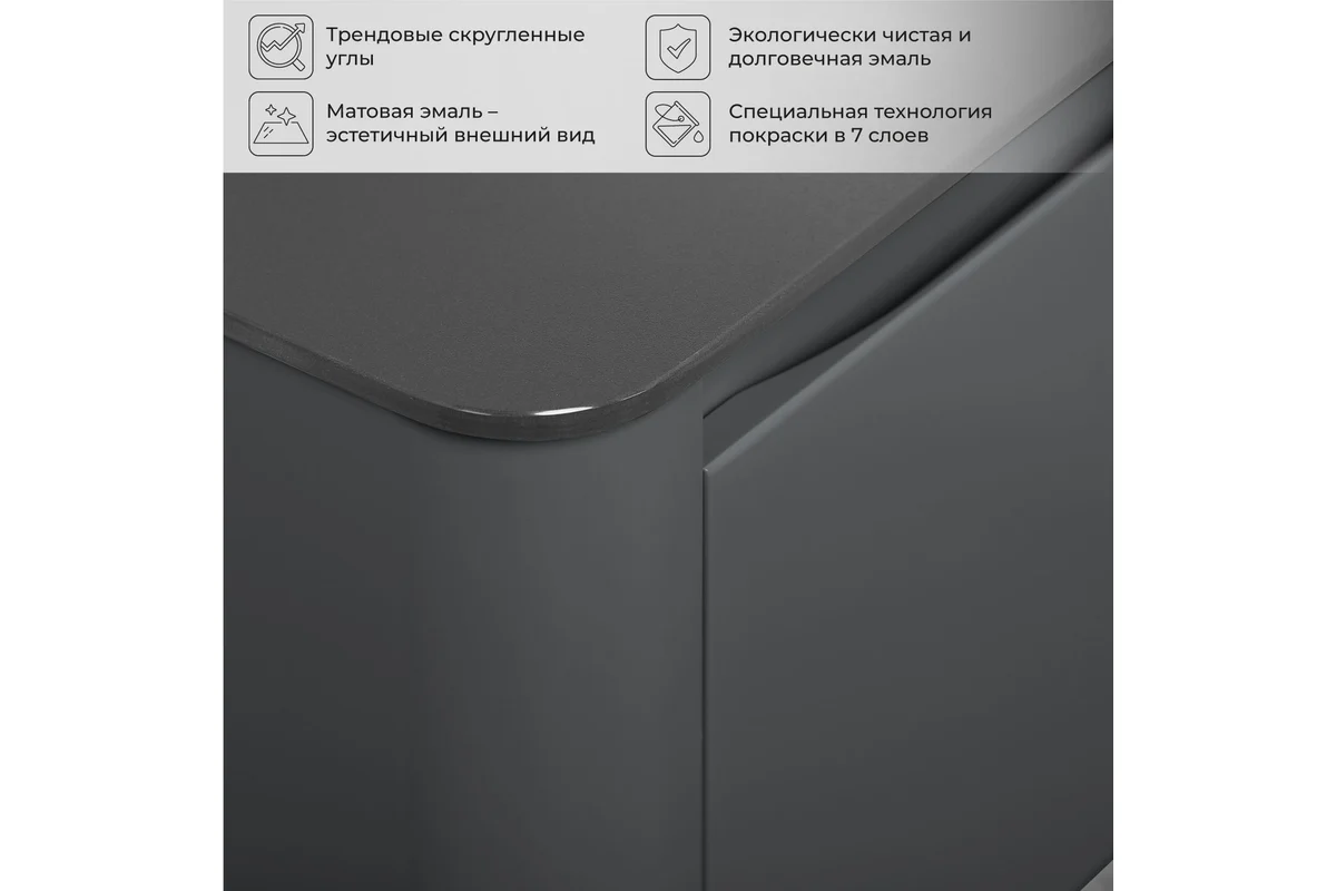 Благодаря качественной эмали, поверхность тумбы устойчива к быстрому износу, что обеспечивает ей долговечность и лёгкость в уходе.