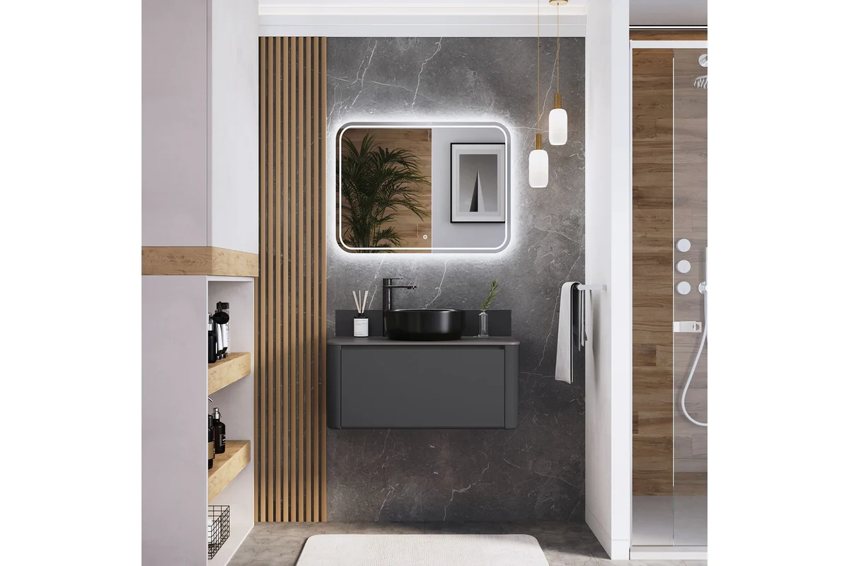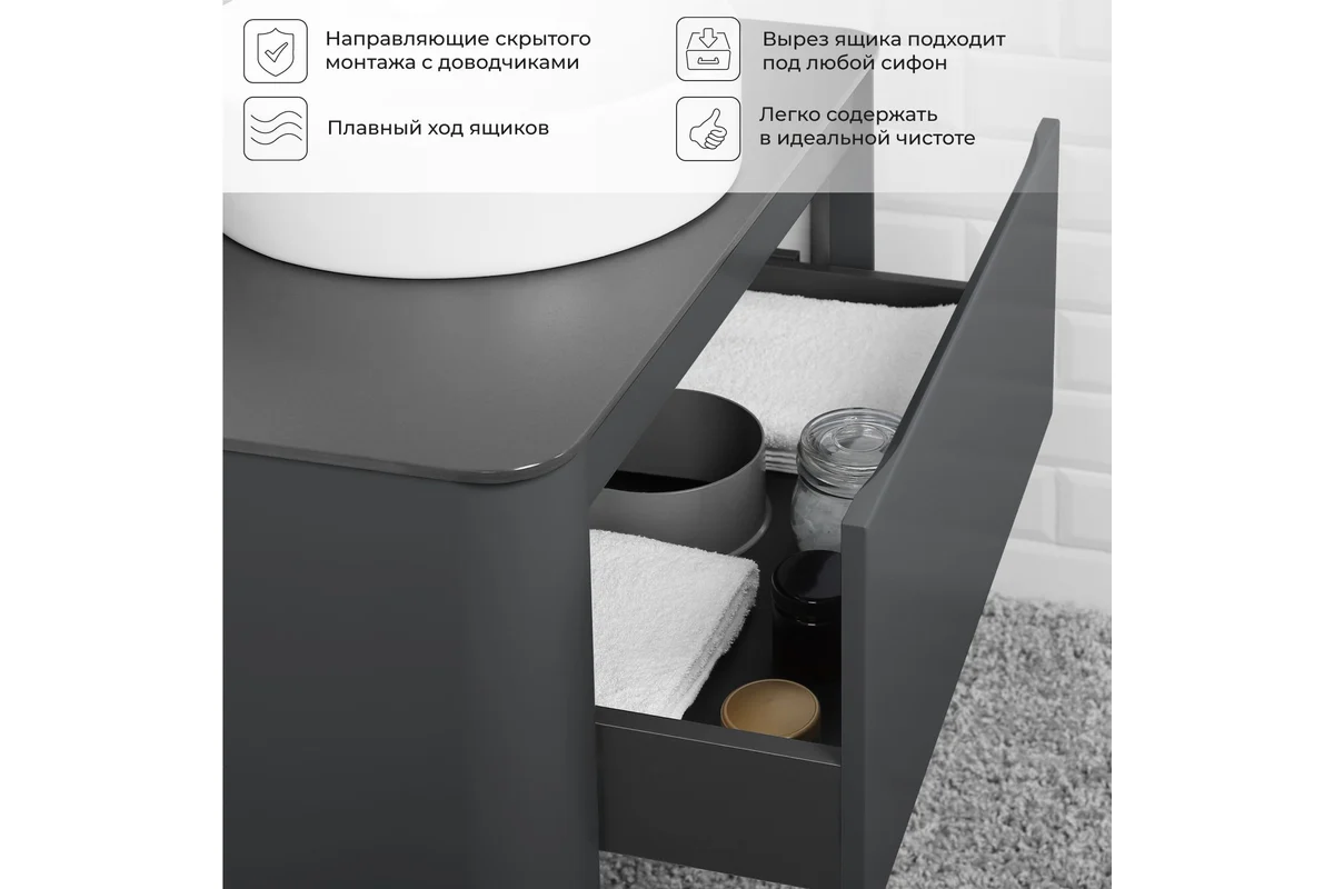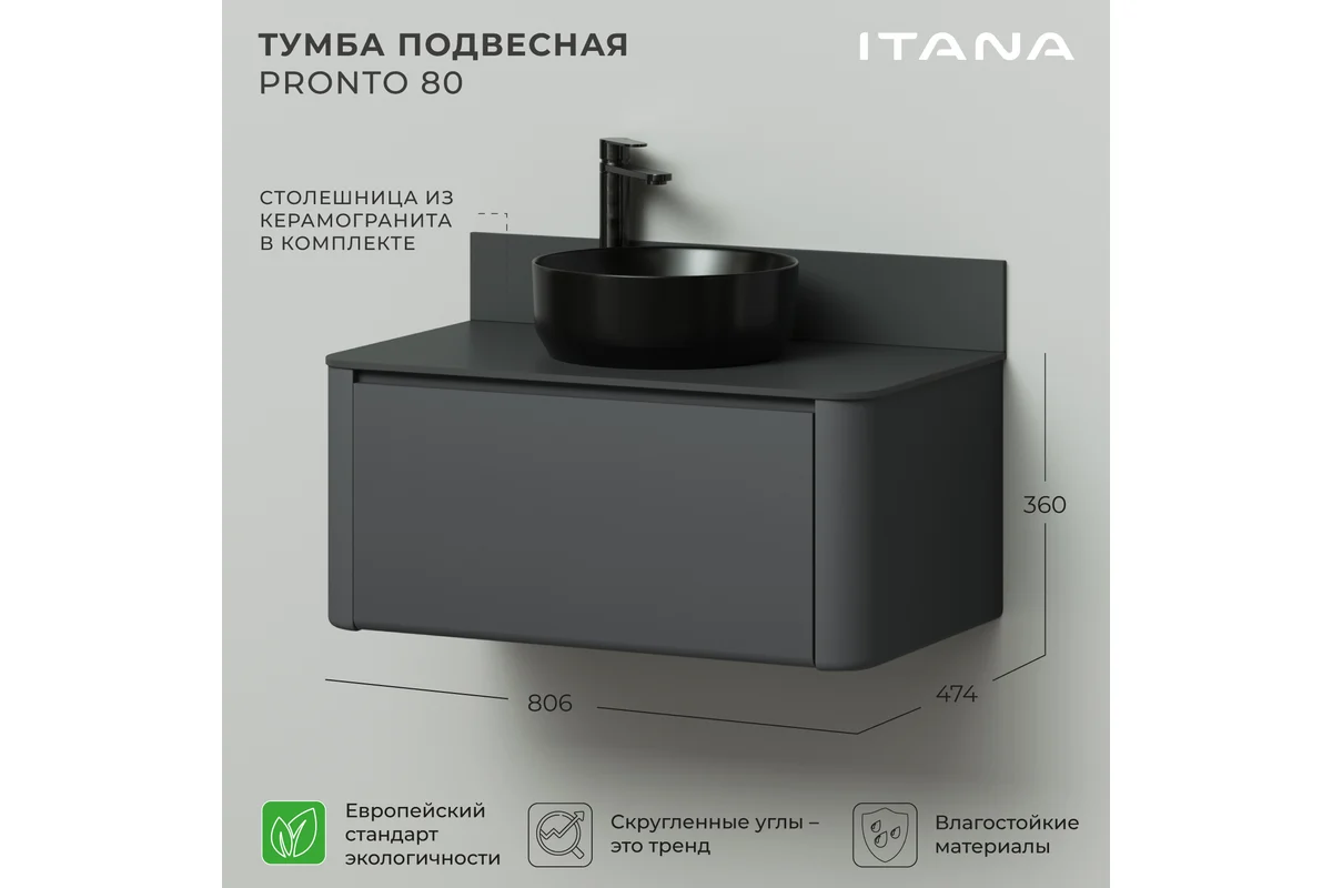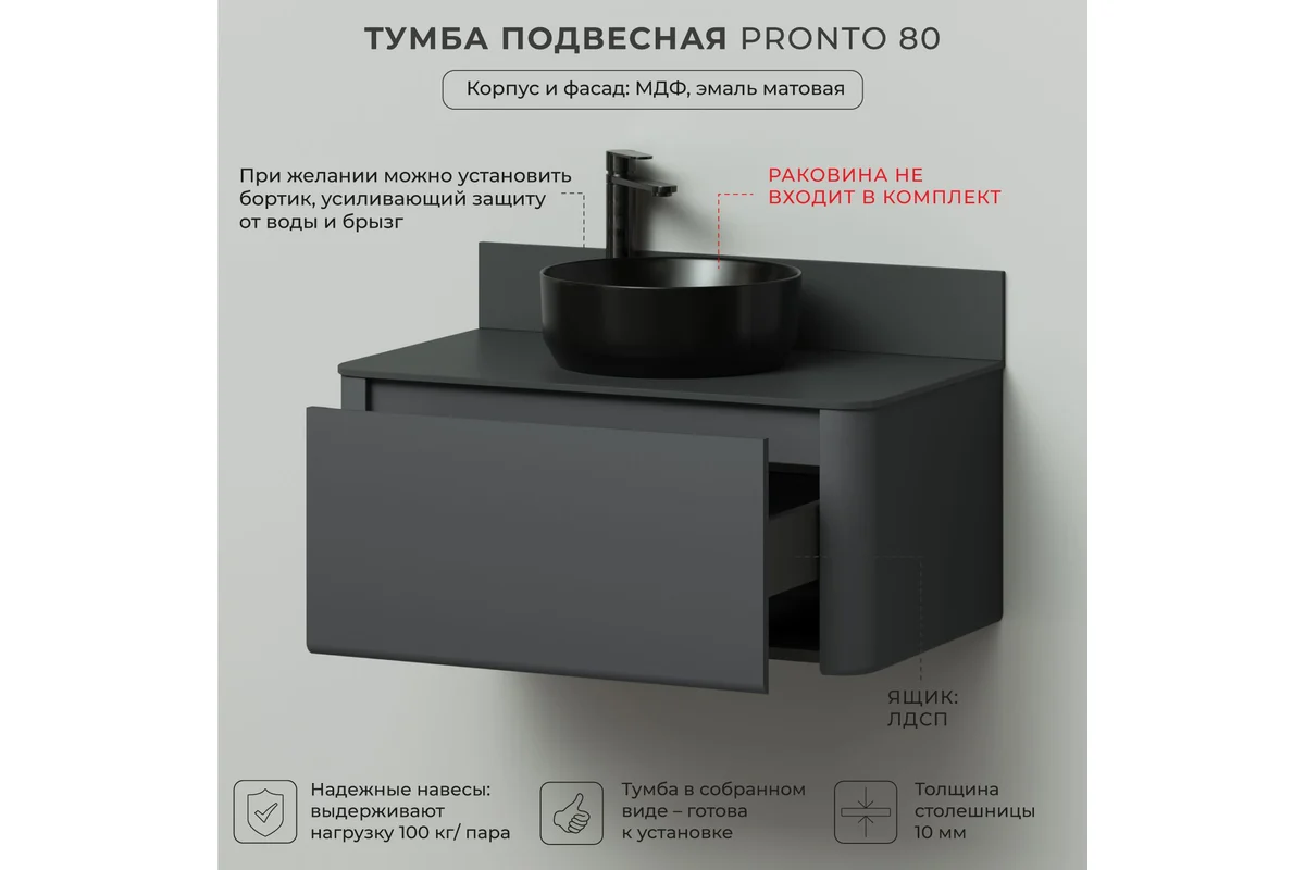 Тумба со столешницей Итана Pronto 4657810339903 80 см (эмаль графит матовый) подвесная