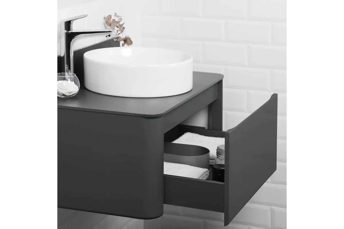 Тумба со столешницей, являясь ключевым элементом ванной комнаты, позволит максимально удобно организовать рабочее пространство, сохраняя при этом стильный внешний вид интерьера.