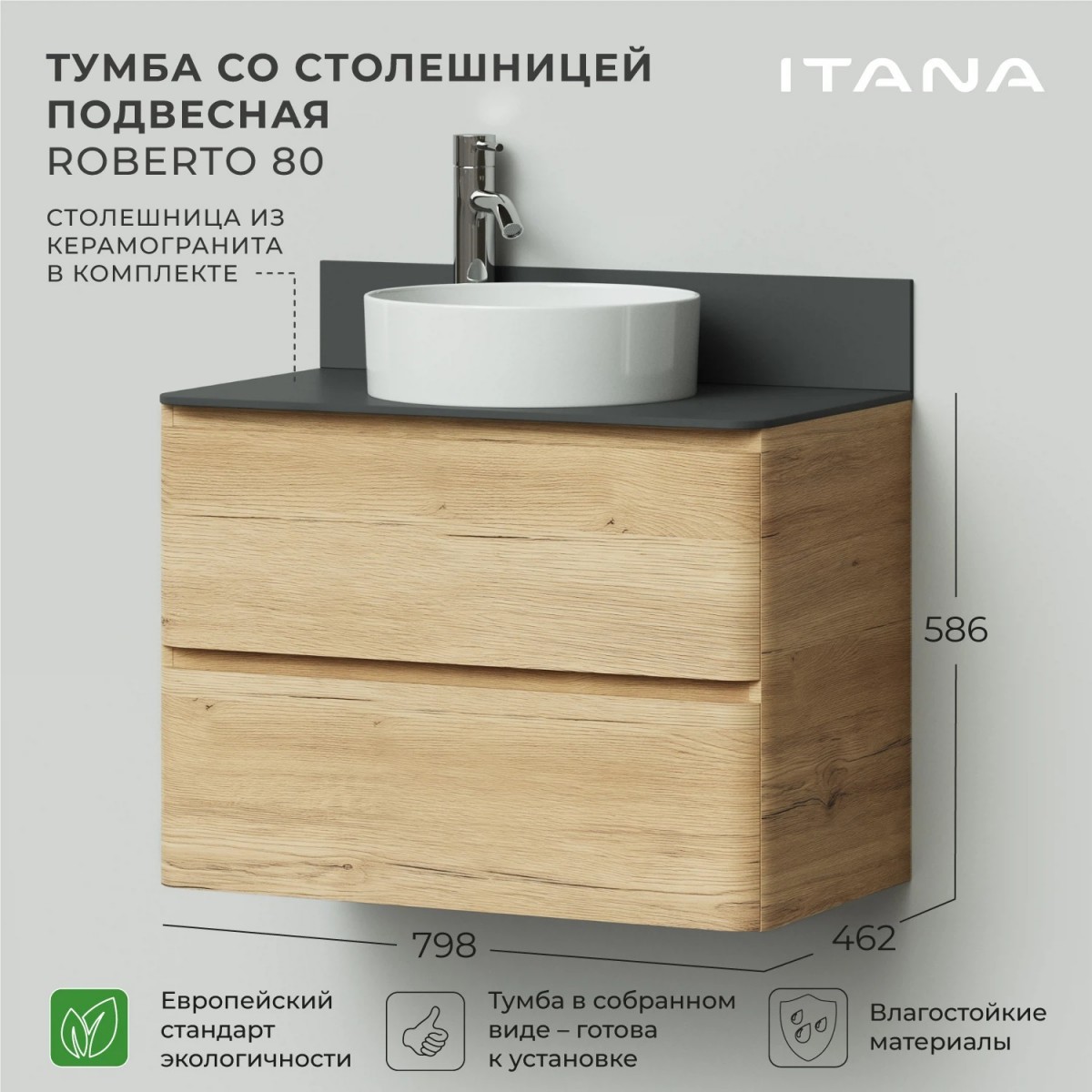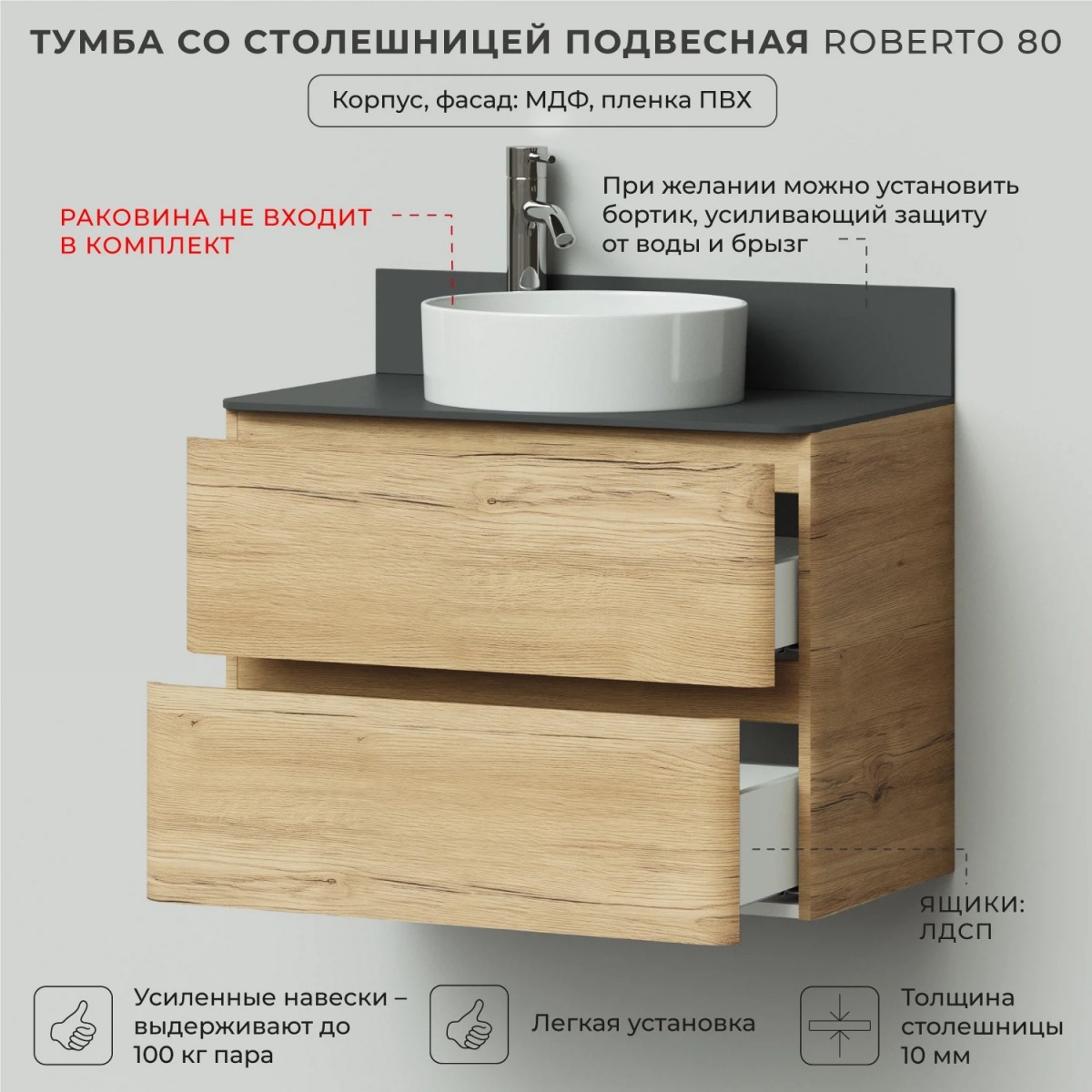Тумба со столешницей Итана Roberto 4657826226600 80 см (дуб мавелла голд) подвесная