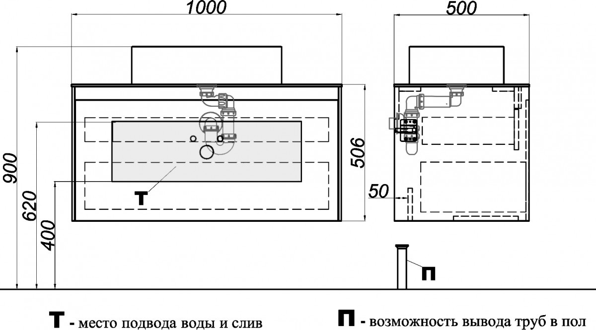 - Внутренний ящик тумбы полноразмерный благодаря оснащению специальным сифоном, позволяющим экономить пространство мебели.