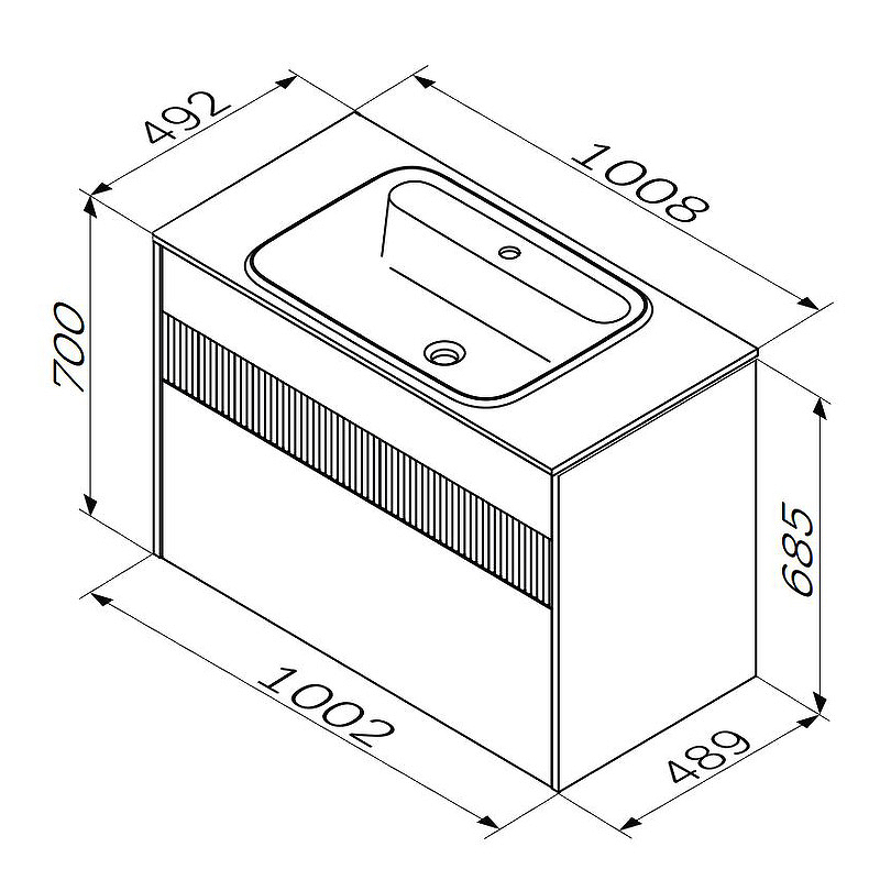 Габариты корпуса тумбы (ШхВхГ): 1000х700х490 мм.