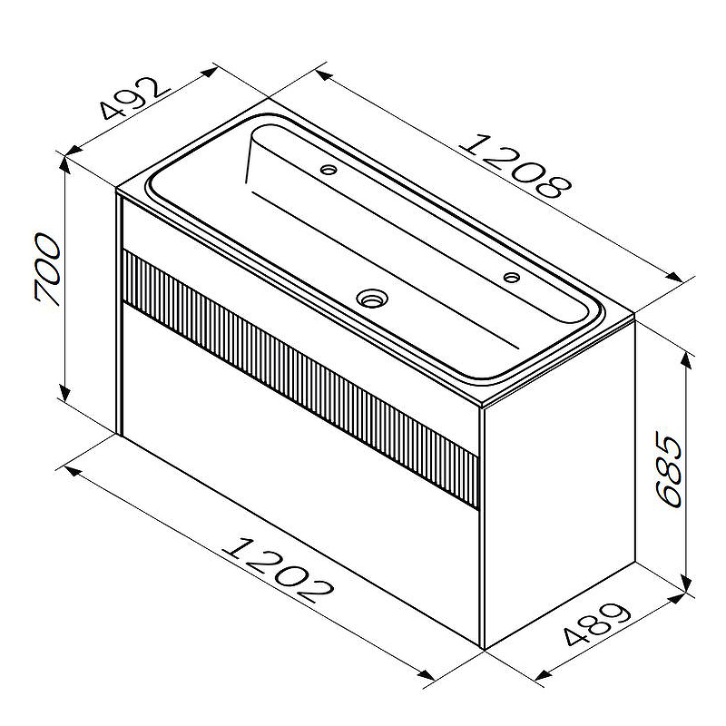 Габариты корпуса тумбы (ШхВхГ): 1200х700х490 мм.