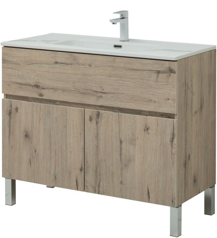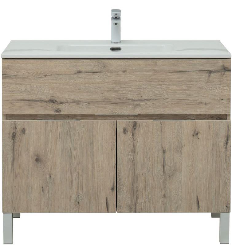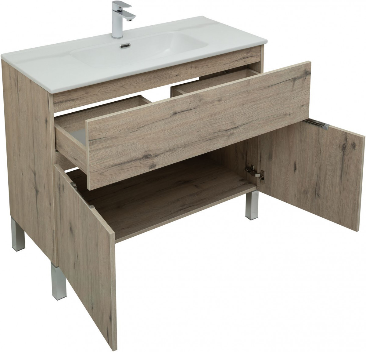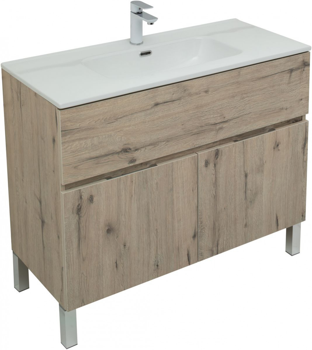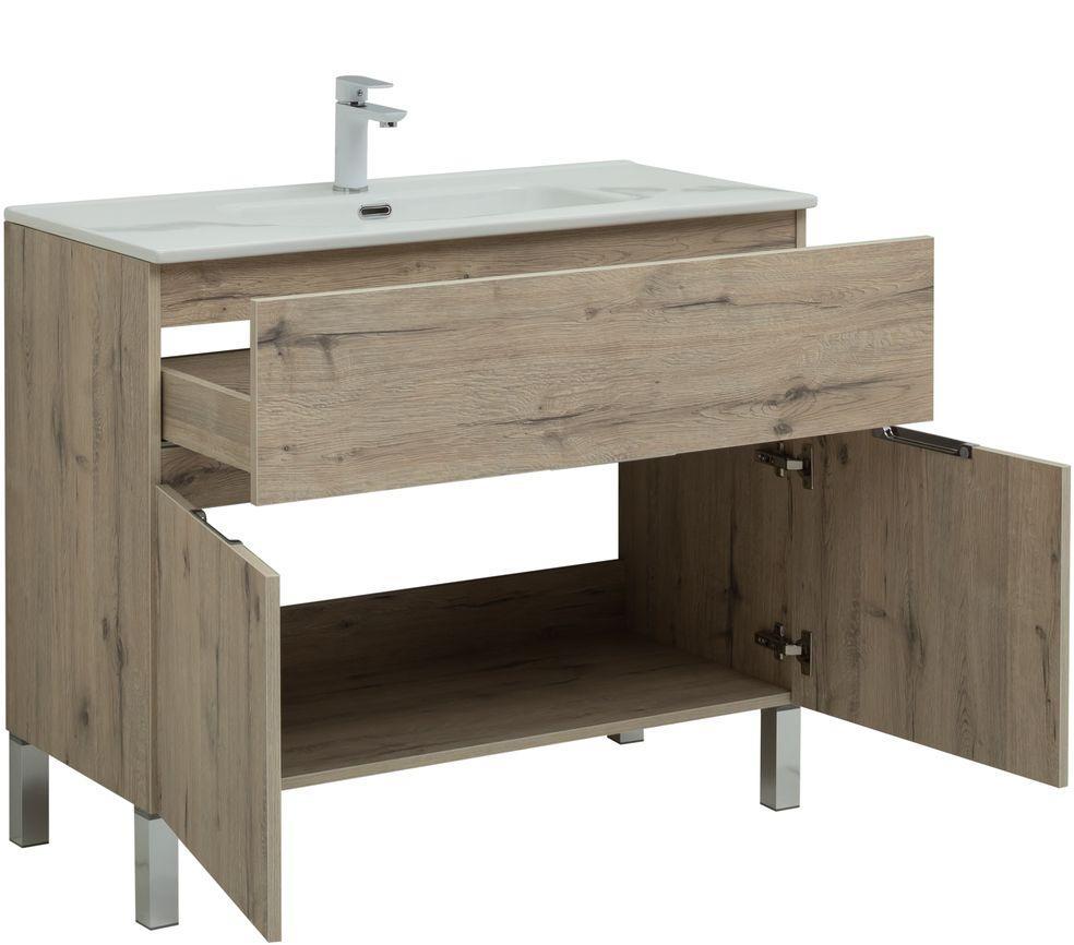Тумба под раковину Aquanet Алвита New 277557 100 см (дуб веллингтон белый) 1 ящик 2 дверцы, напольная