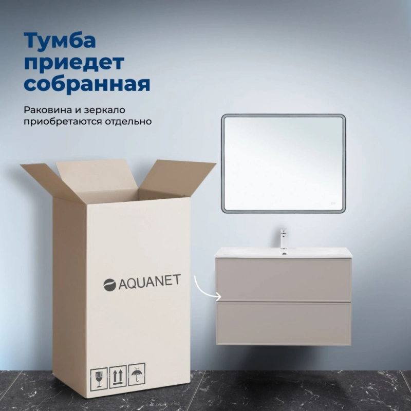Тумба под раковину Aquanet Арт 343969 100 см (бежевый) подвесная