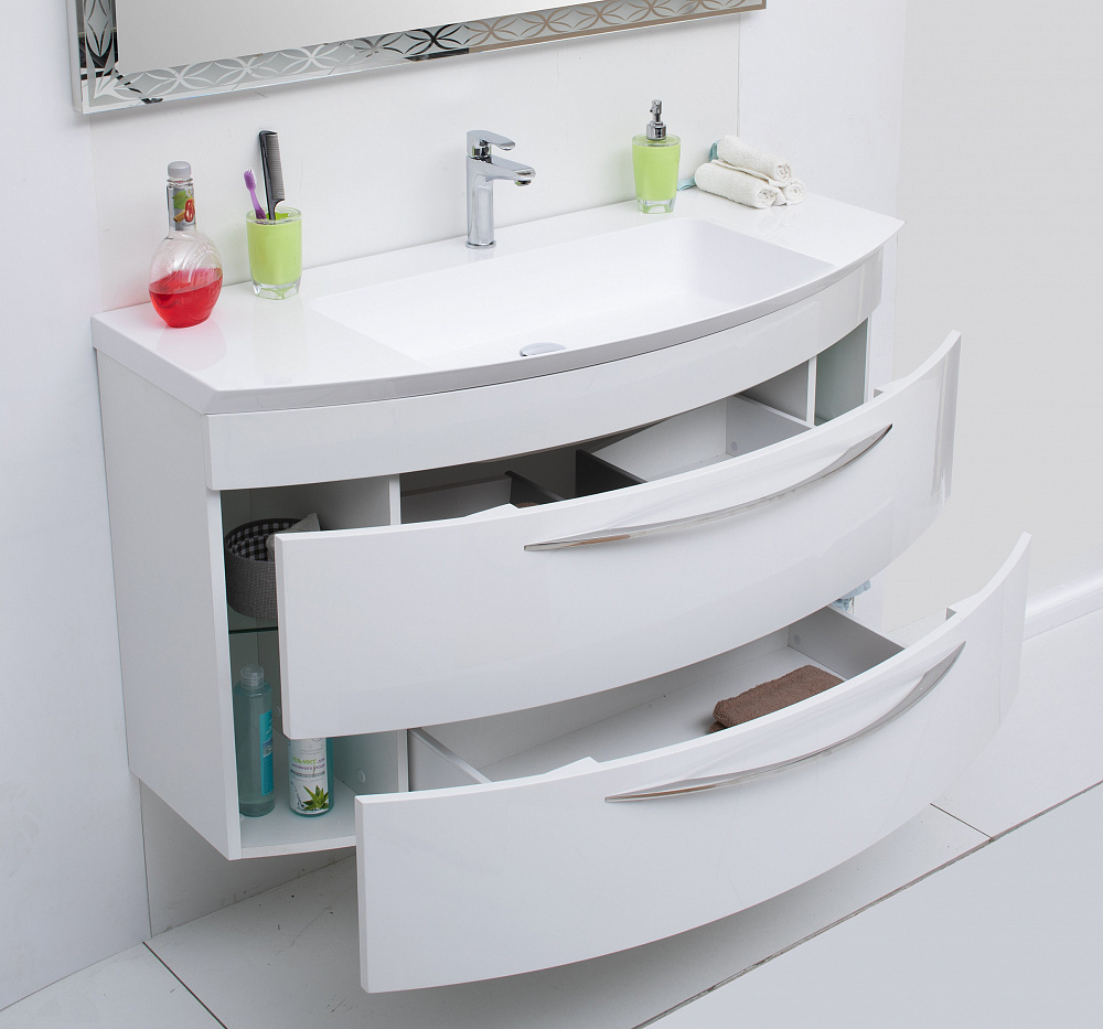 Тумба в ванную комнату De Aqua Лонг 120 привлекает своими округлыми формами и изящным дизайном. Выполненная в стиле модерн, она подкупает сдержанным и между тем стильным дизайном. Тумба шириной 120 мм отлично впишется в интерьер просторной ванной комнаты.