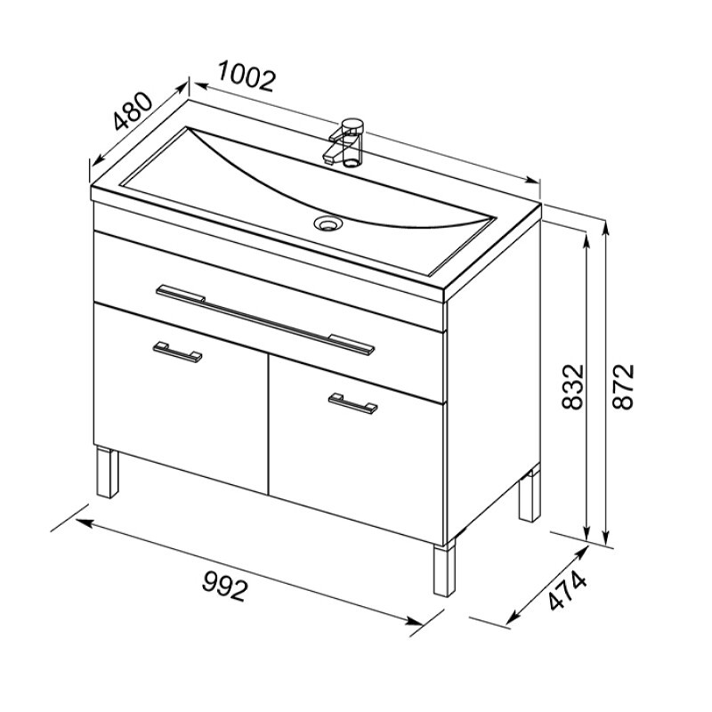 Тумба под раковину Aquanet Верона 100 см (белый) 1 ящик 2 дверцы напольная
