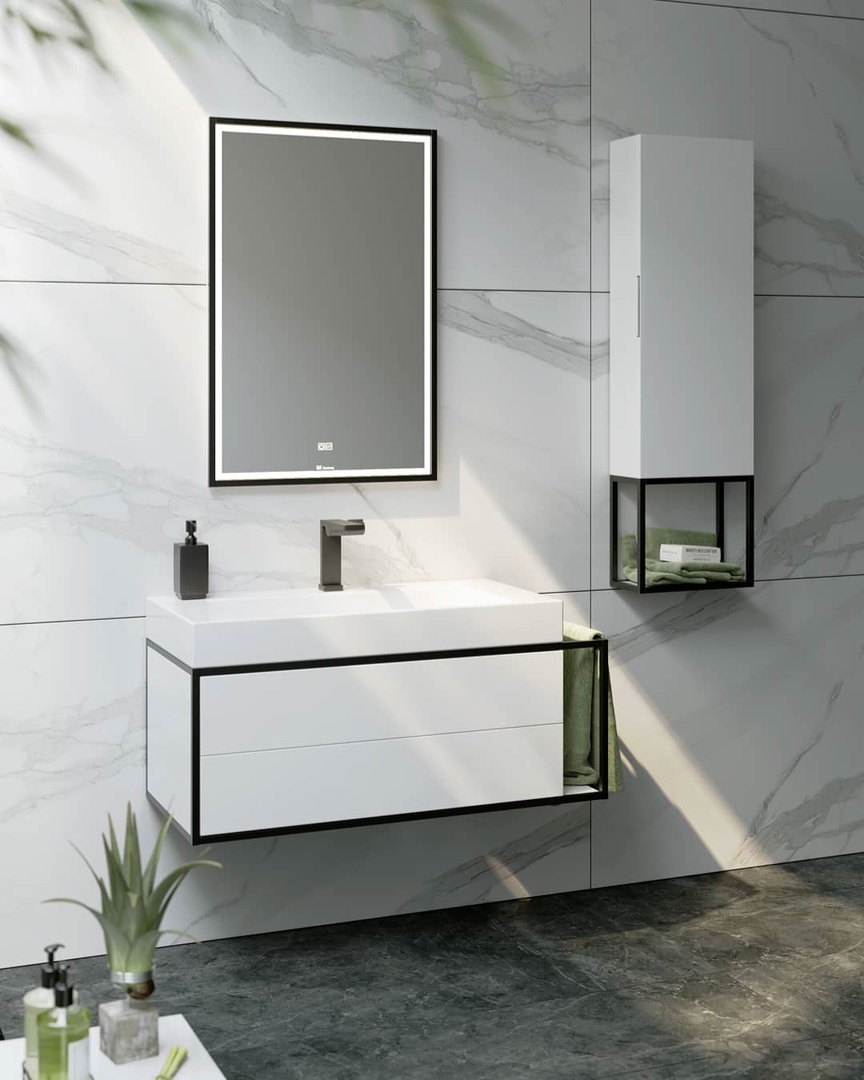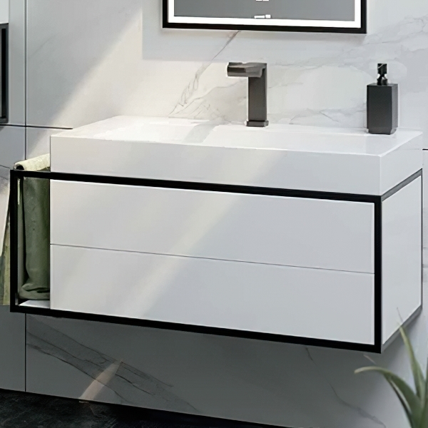 Подвесная тумба под раковину Clarberg Logic 100 L LOG0110L/LOG0110R с двумя ящиками и дополнительной консолью для полотенец справа/слева.
