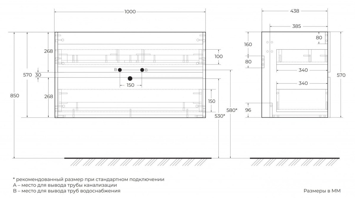 - Монтаж: подвесной, крепление к стене