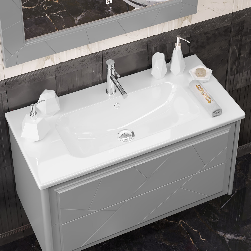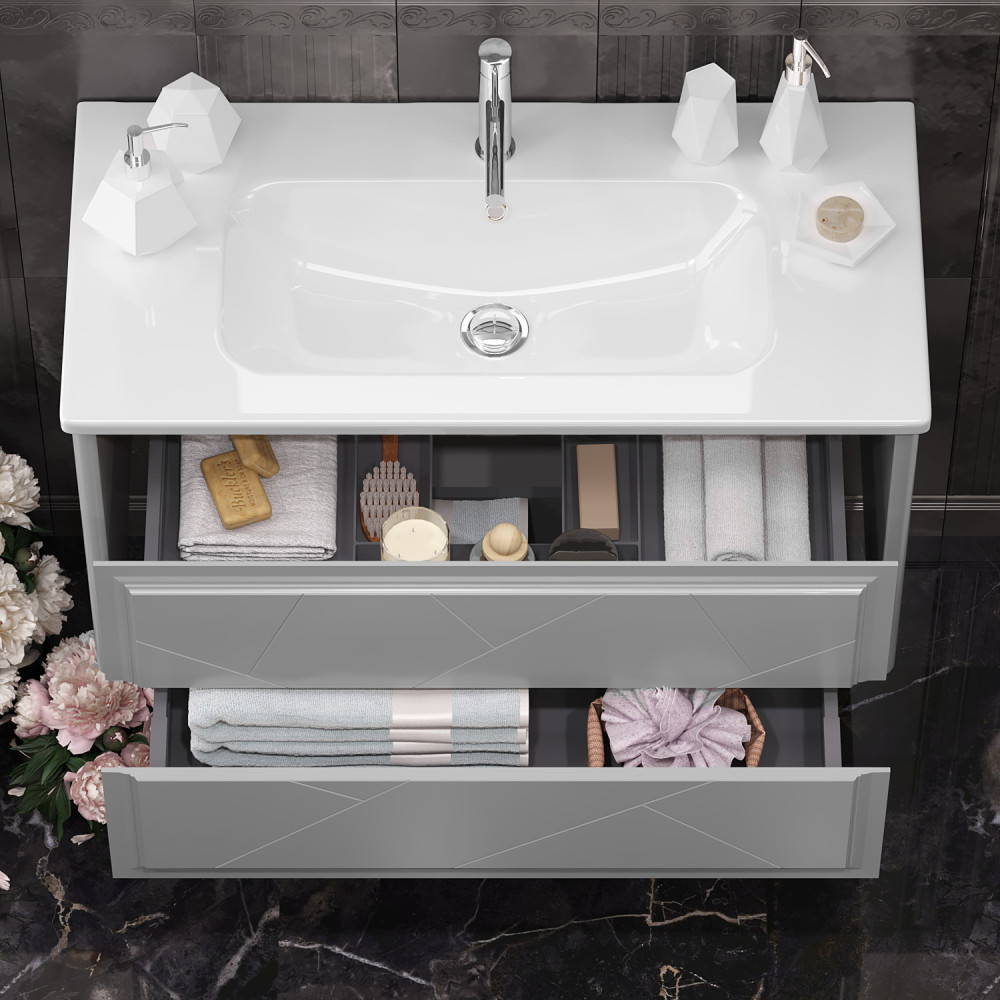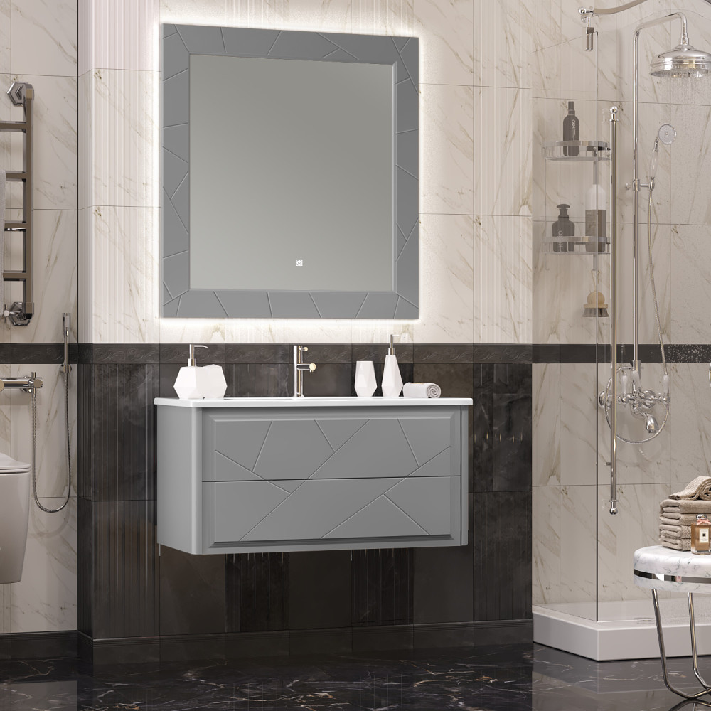 Коллекцию ЛУИДЖИ украшают сложная фрезеровка фасадов строгими линиями и декоративная подсветка по периметру зеркала, которое оснащено сенсорным выключателем. Тумбы дополняются современными ультратонкими керамическими раковинами в размерах 70,80,90,100 см. Коллекция ЛУИДЖИ по праву заслуживает называться хитом продаж, благодаря своему универсальному дизайну и профессиональному исполнению. Внимание к деталям и качество покраски выделяет ЛУИДЖИ среди другой мебели для ванной комнаты. Коллекция ЛУИДЖИ имеет универсальную тумбу в размере 90 см и может комплектоваться прочной столешницей из керамогранита, на которую устанавливается накладная раковина любого дизайна и производителя. Коллекция изготавливается в цветах белый матовый и серый матовый. Мебель оснащена механизмами плавного закрывания Hettich (Германия).