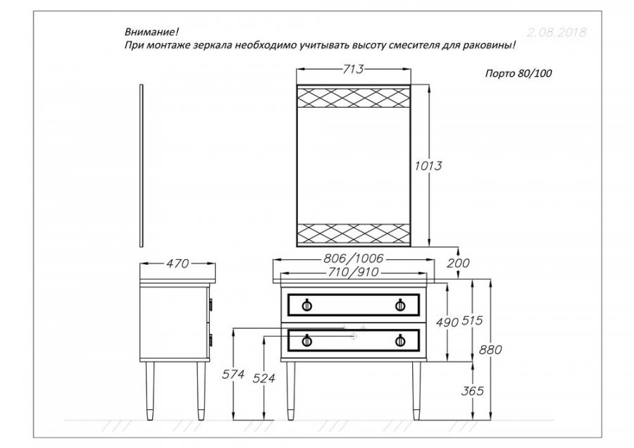 - Монтаж: на ножках.