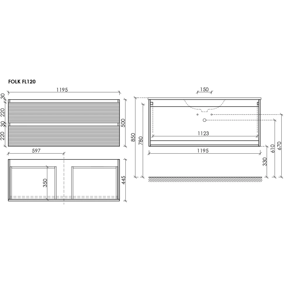 Тумба под раковину Sancos Folk FL120ES 120 см (светло-серый матовый) подвесная