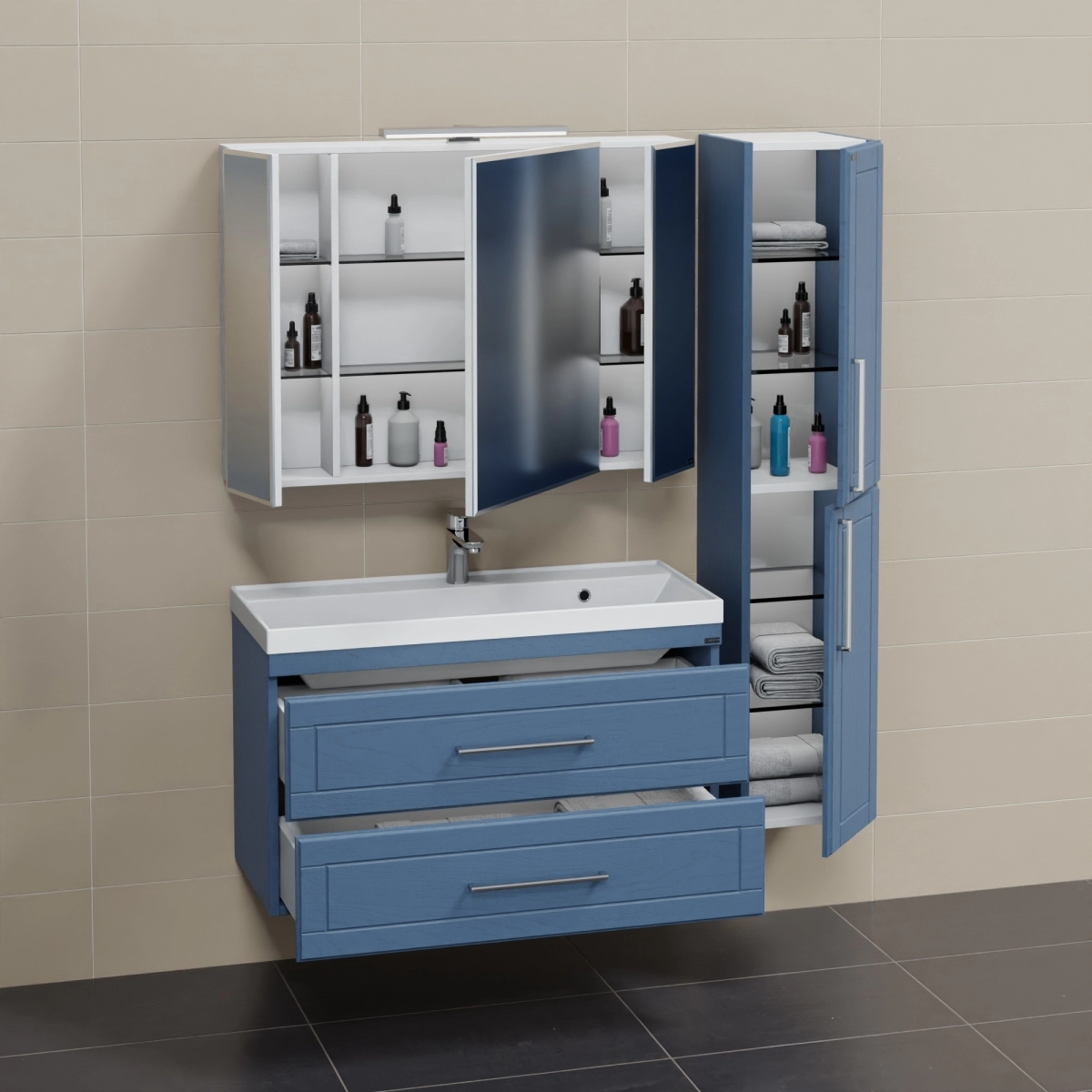 Система хранения: 2 выдвижных ящика полного выдвижения с плавным закрыванием.