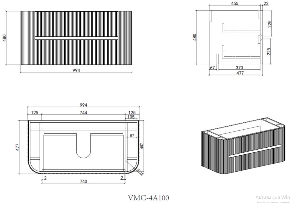 - Мебель комплектуется раковинами из кориана VCB-4A100MW
