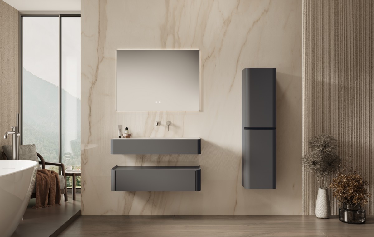 - На изображениях представлены зеркало VLM-4F100GM-2 и шкаф пенал VSC-4CA150MG (приобретаются отдельно)
