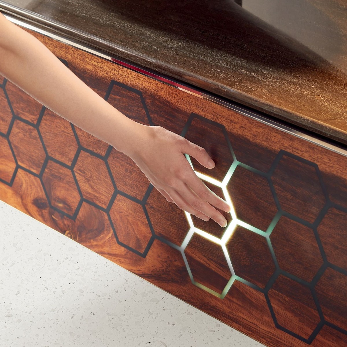 - Декоративная подсветка фасада реагирующая на прикосновения.