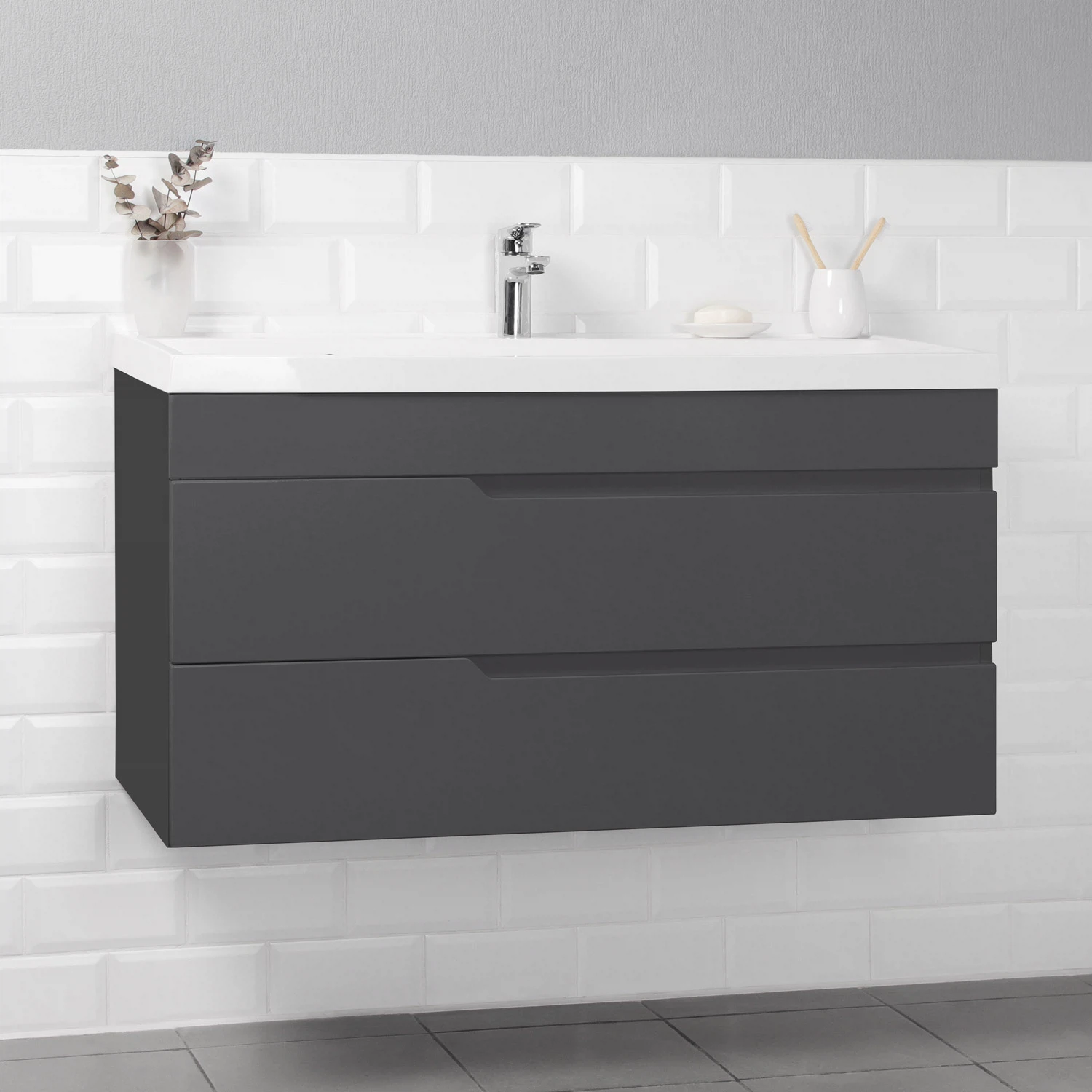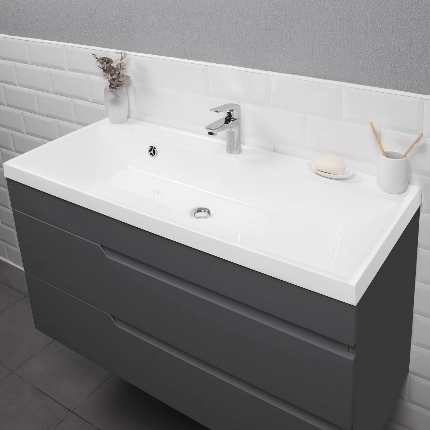 Тумба с раковиной Итана Alexa 4657810330221 100 см (графит) подвесная