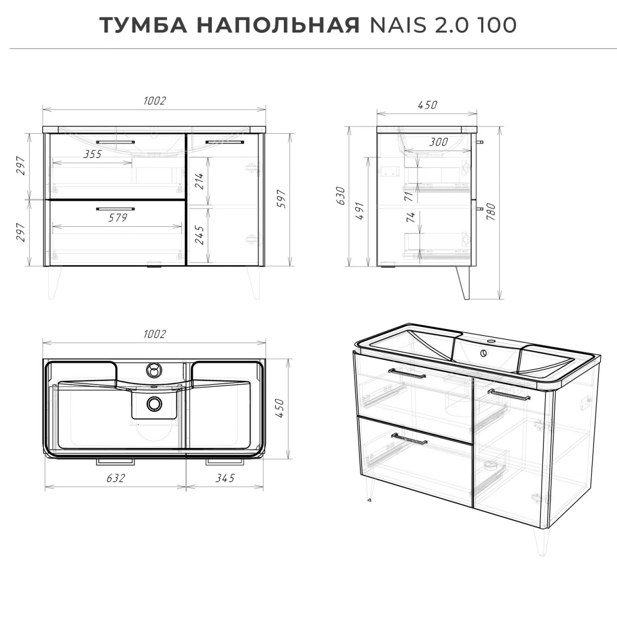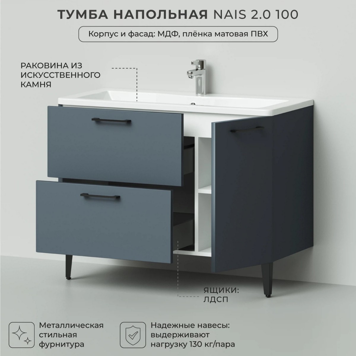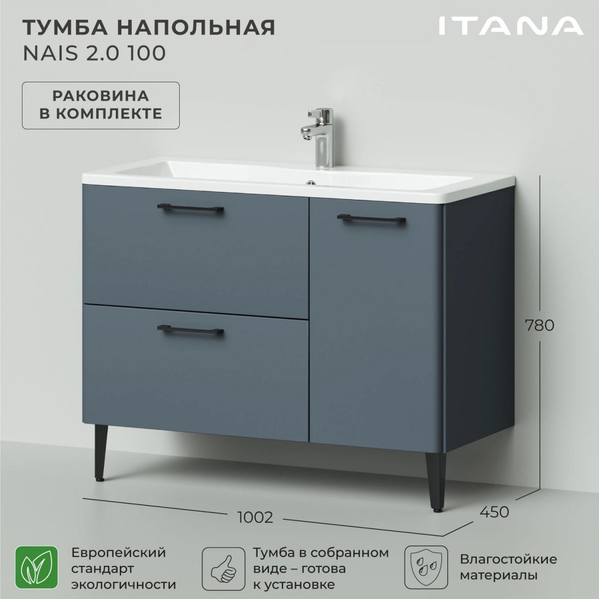 Тумба с раковиной Итана Nais 2.0 4657810334830 100 см (антрацит) напольная