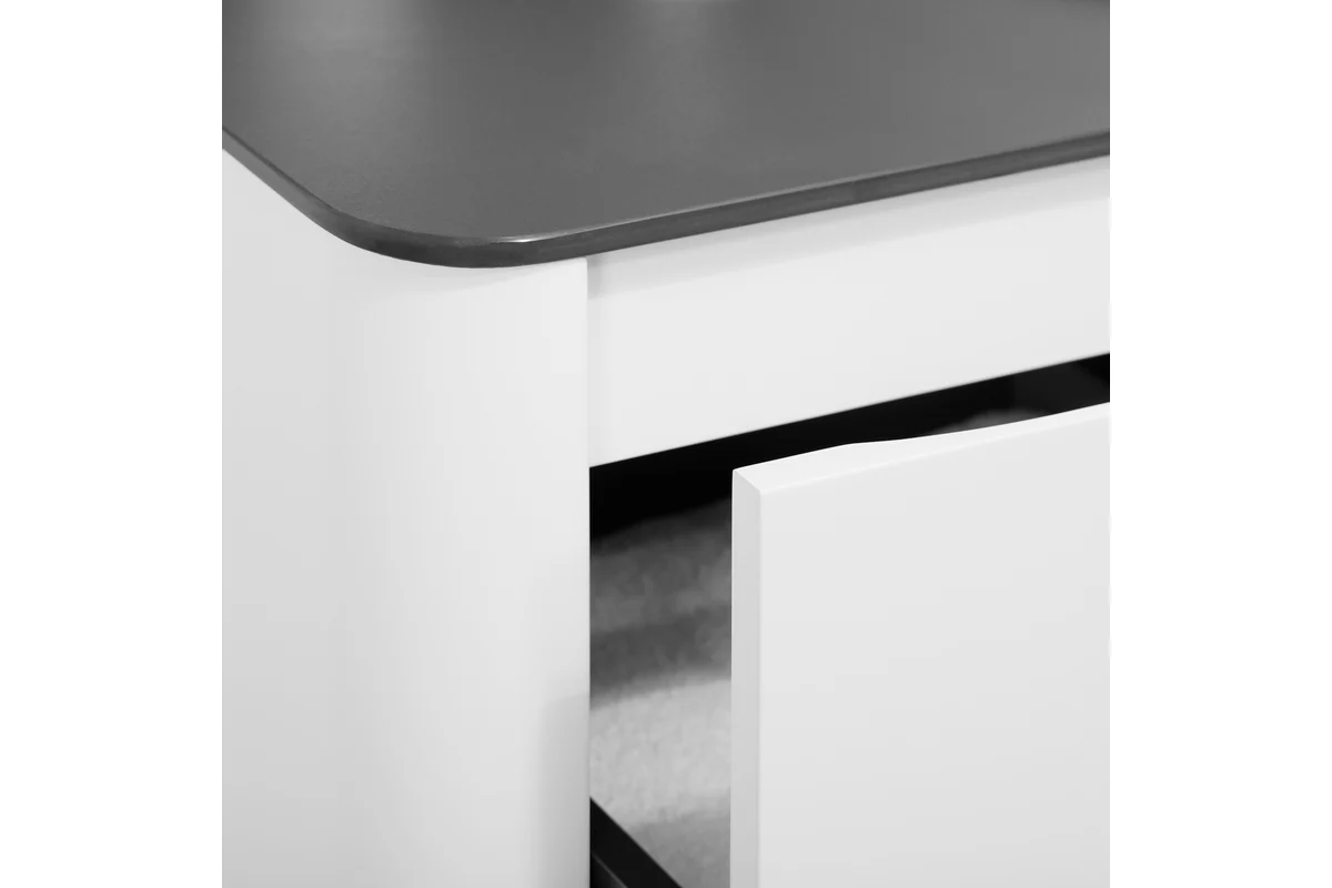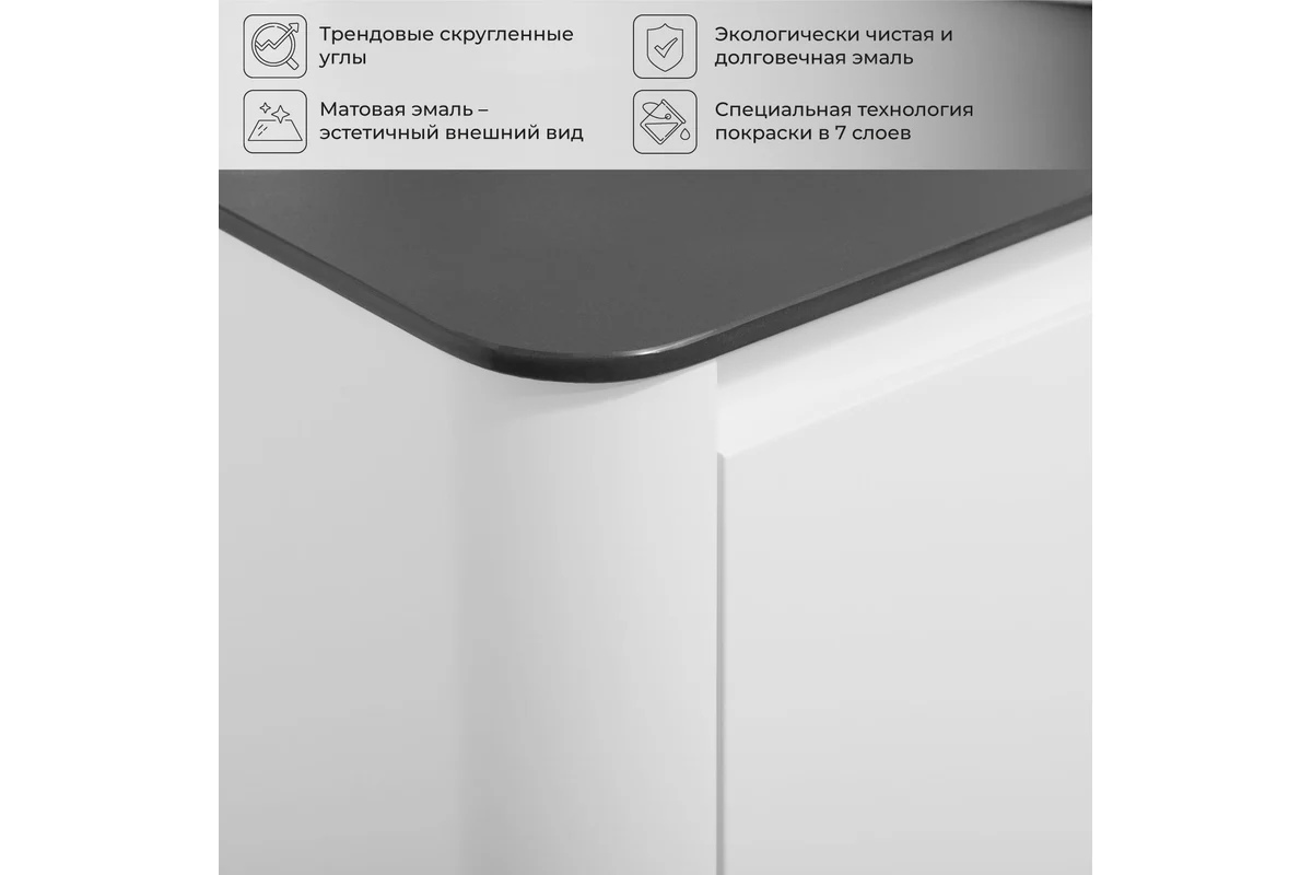 Благодаря качественной эмали, поверхность тумбы устойчива к быстрому износу, что обеспечивает ей долговечность и лёгкость в уходе.