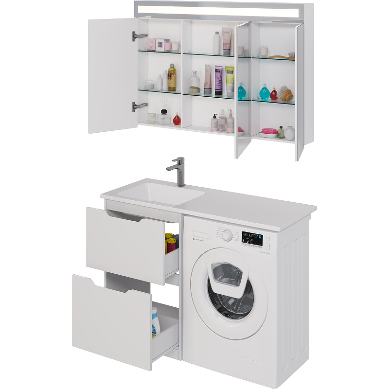 Тумба под раковину Dreja Vega 60 см (белый) 2 ящика, напольная, под стиральную машину