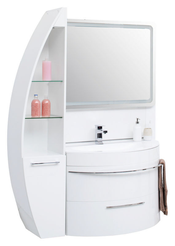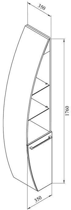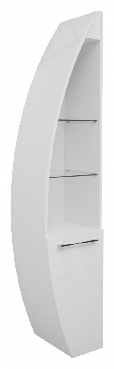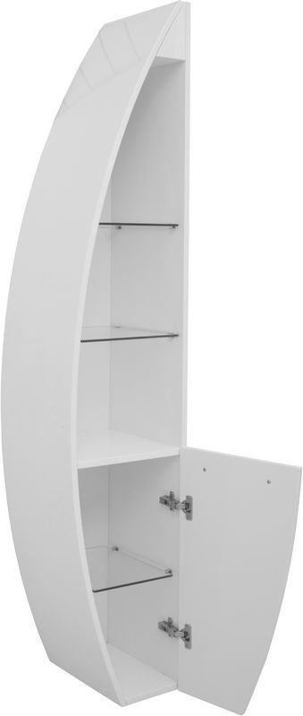 Пенал De Aqua Эскалада RS0 L белого цвета преобразит угол ванной комнаты, заполнив интерьер округлостью форм и предлагая по-иному взглянуть на привычное пространство. Его асимметричная форма, напоминающая разрезанный напополам полукруг, привнесет элементы абстракции в привычное видение дизайна помещения. В комплекте с правосторонней тумбой из этой же коллекции этот подвесной шкаф-пенал, в котором предусмотрена левосторонняя установка, составит единое изделие, поражающее своей эксцентричностью и расширяя возможности комплекта. Тем более что глубина тумбы и шкафа идентичны - 350 мм, так что составление из него единого изделия не составит труда. Несмотря на непривычную форму, пенал довольно вместительный и позволит разместить в нем много полезных для ванной комнаты вещей. Стеклянные полочки в верхней части шкафа - открытые, и на них можно поставить то, что пользуется в ванной комнате повышенным спросом, скажем, парфюмерию, косметику и средства для принятия ванны. Нижние полки скрыты за распашными дверцами, которые снабжены механизмом доводчика, что добавит комфорта в использование шкафа-пенала.