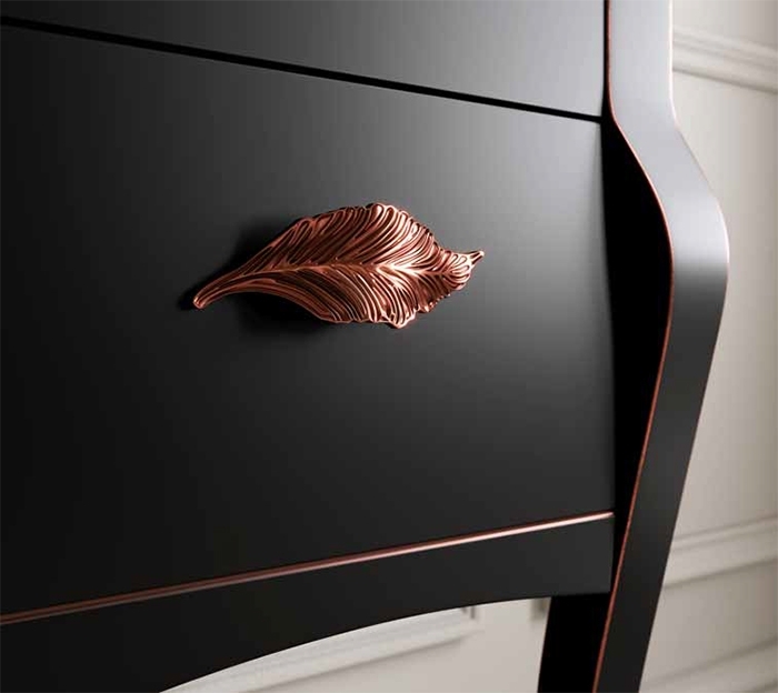 Ручки в виде листьев эффектно дополняют образ мебели.