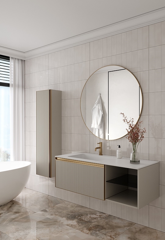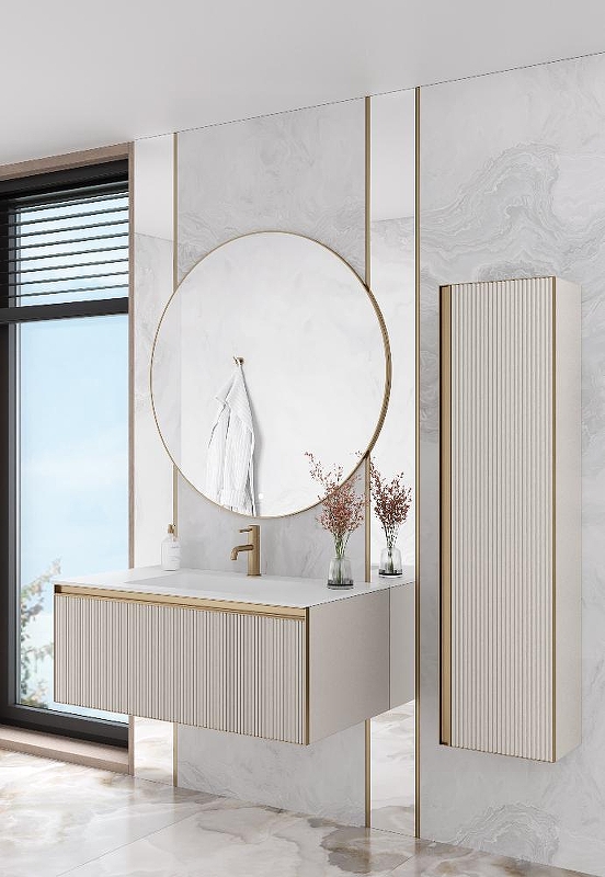 Пенал ArmadiArt Quatro 791-CM-RIB-MG 35 см (кашемир матовый/золото матовое) подвесной