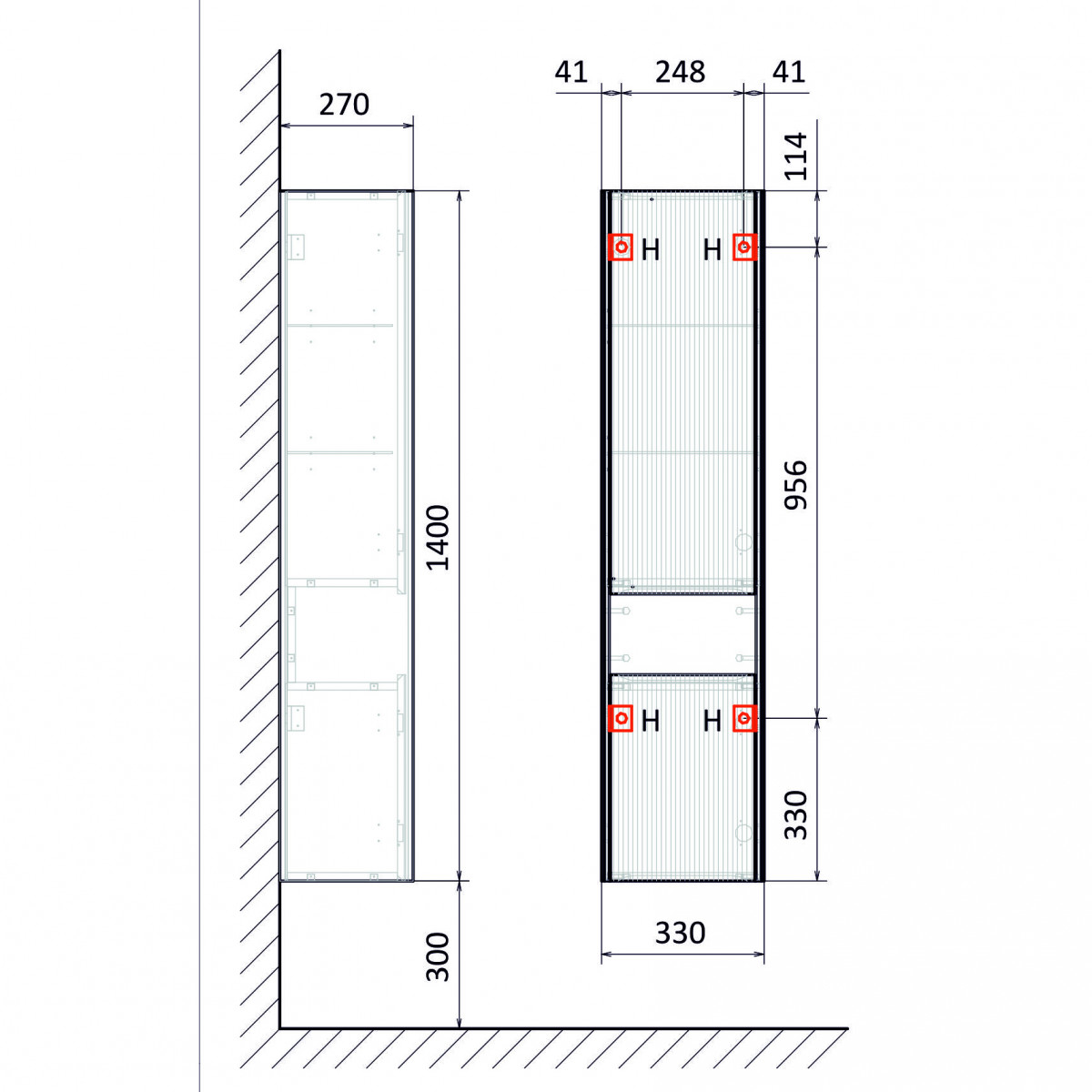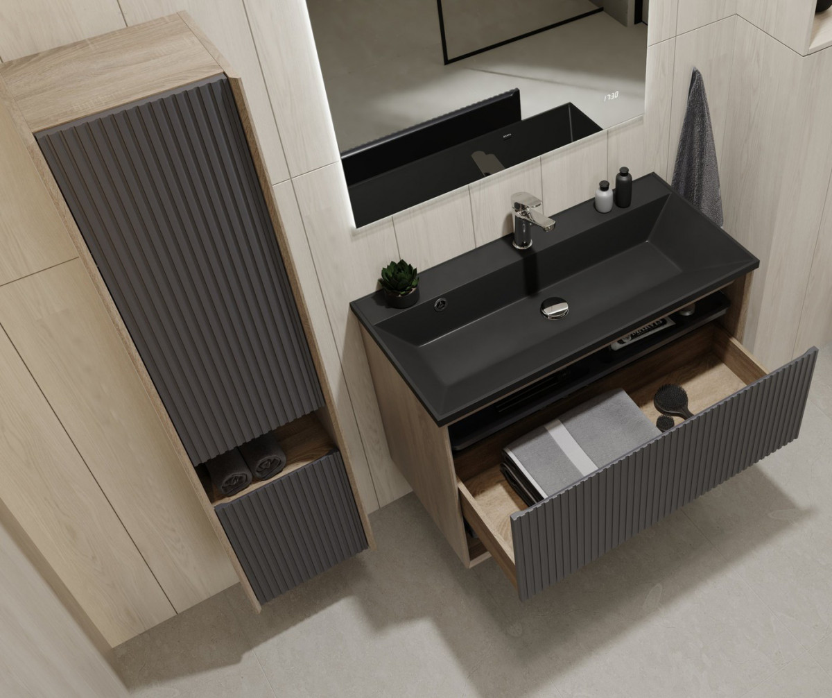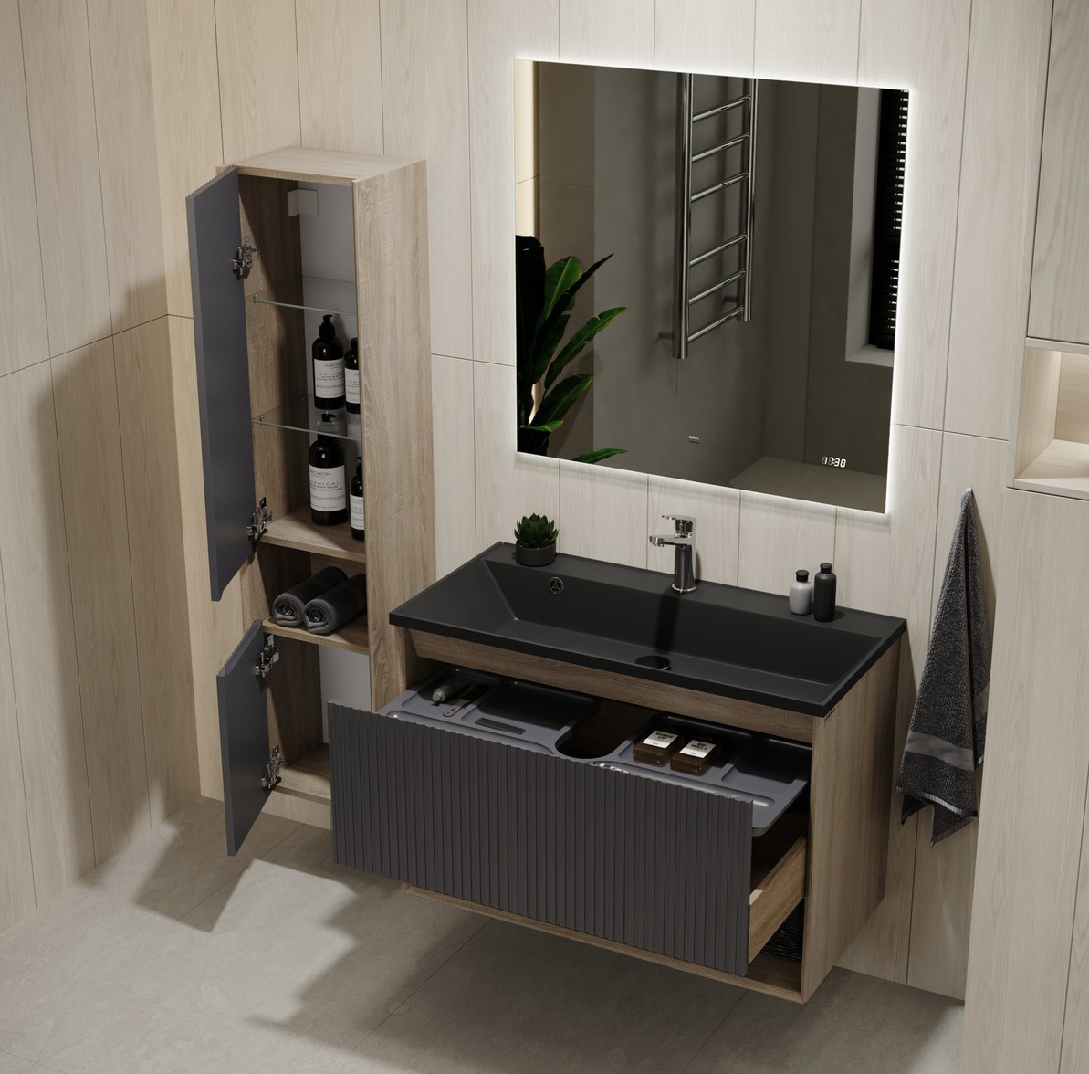 Пенал для ванной Jorno Tossony Toss.04.140/P/DS-A/JR 33 см (антрацит/тёмное дерево) подвесной