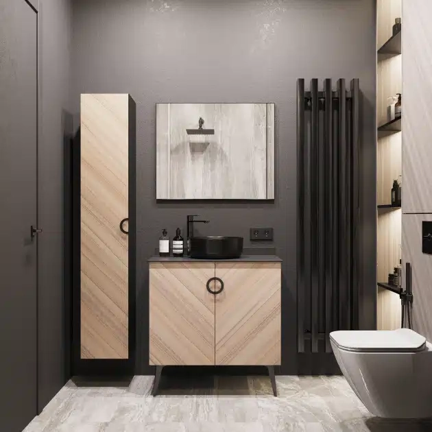 Коллекция Palladio - великолепное звучание современной классики. Изящные пропорции и нестандартный подход к дизайну с сохранением функциональности. Коллекция выполнена из ЛДСП в модных деревянных декорах. Технология производства позволила сделать элементы мебели устойчивыми к влаге. Качественная фурнитура с доводчиками обеспечивает легкое открывание и плавное закрывание дверей. Дизайнерские металлические ручки с покрытием - не только декоративный элемент, но и удобное решение - фасады остаются чистыми при постоянном открывании и закрывании.