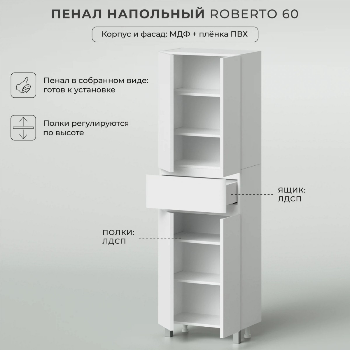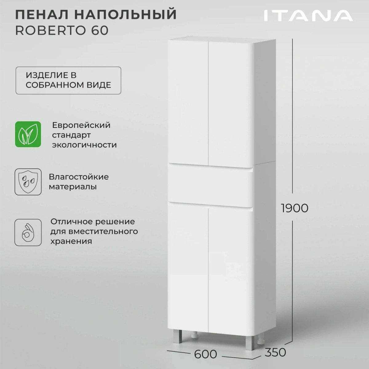 Если вы ищете стильный и функциональный шкаф-пенал для ванной, то напольный пенал Итана Roberto 60 – это именно то, что вам нужно.