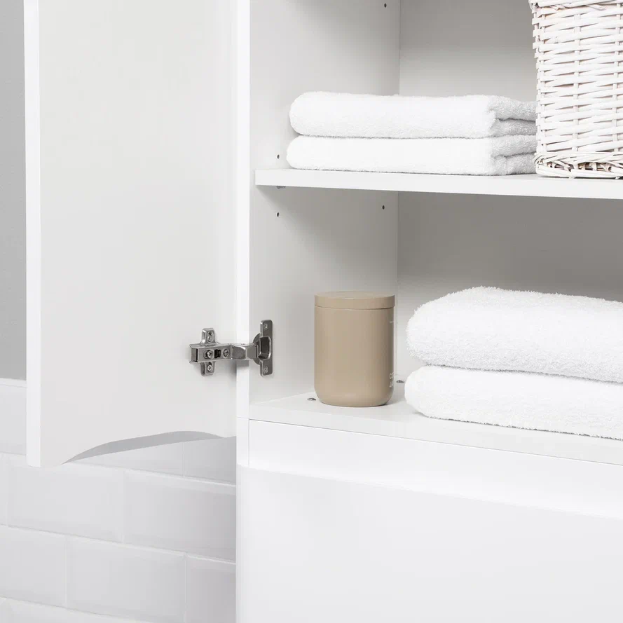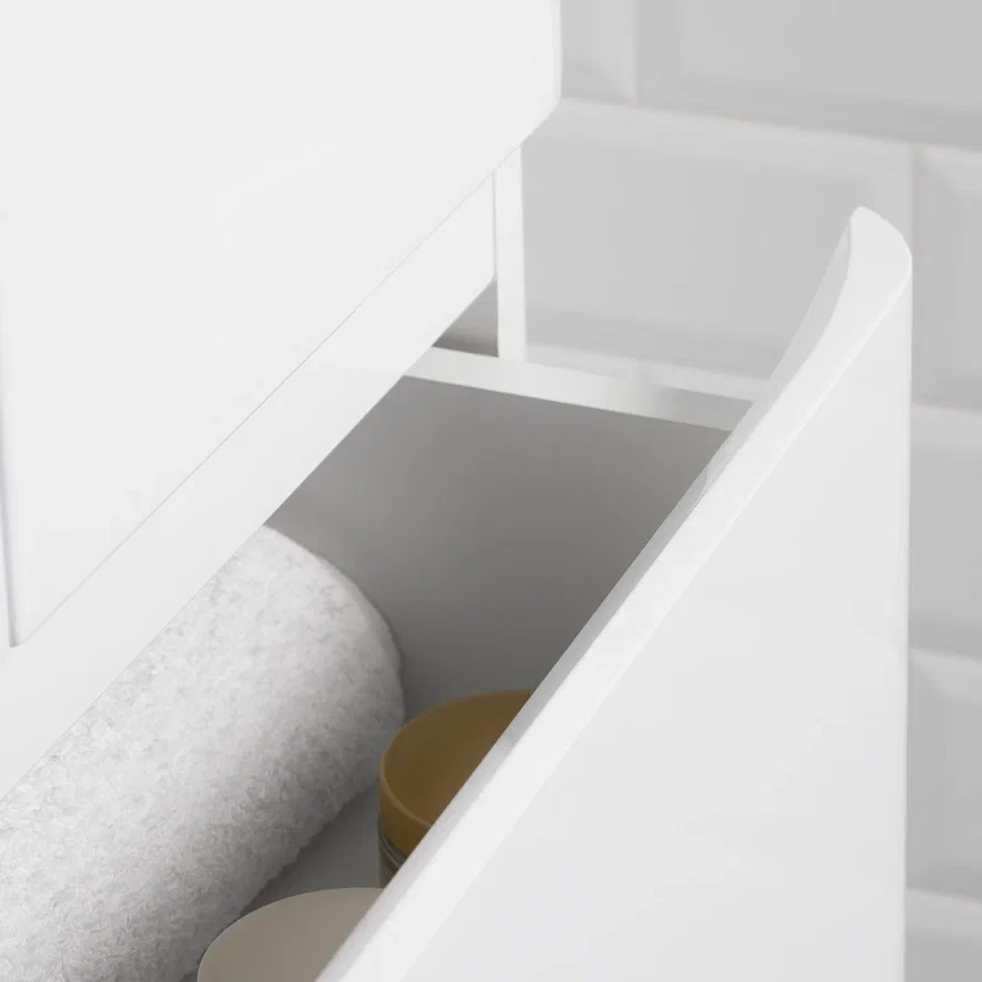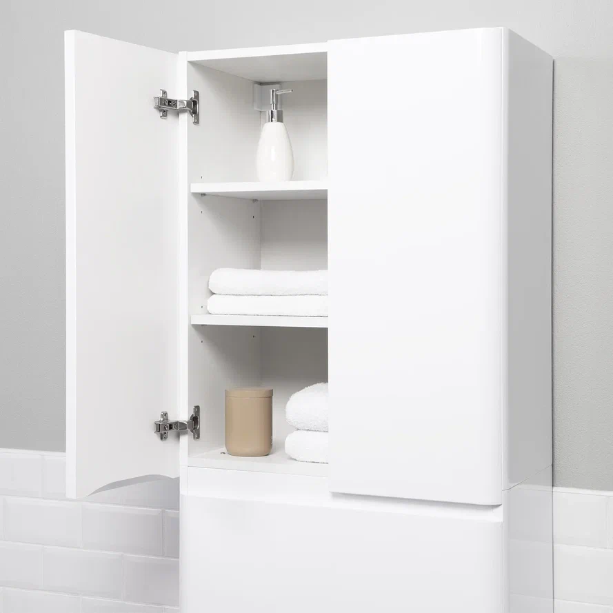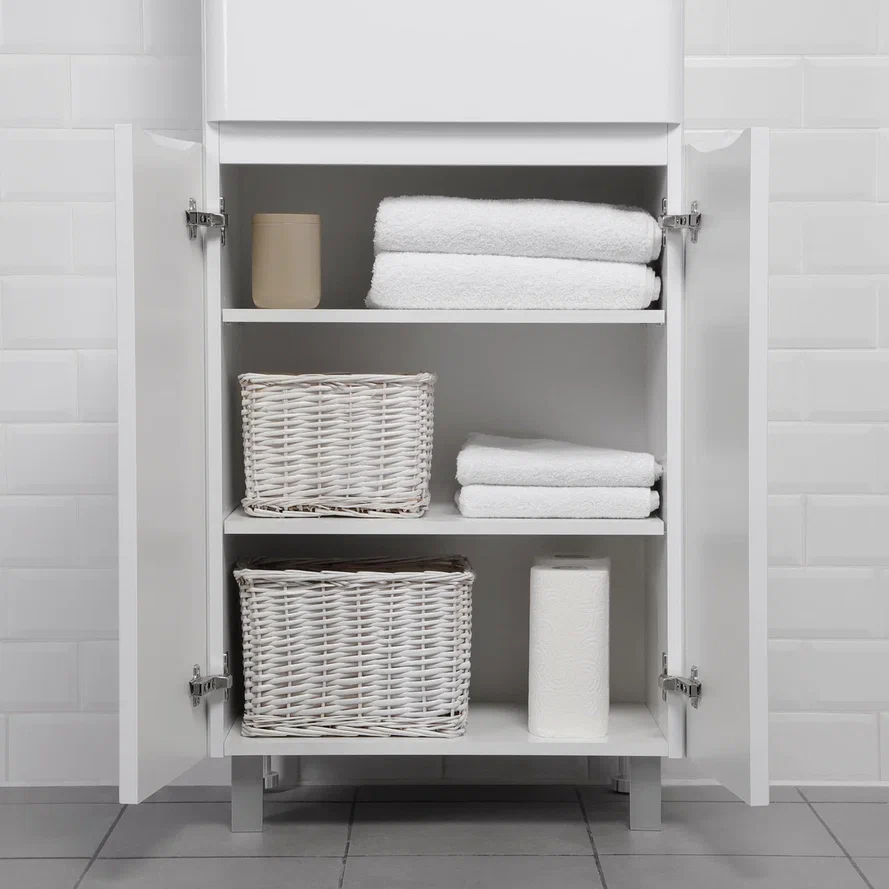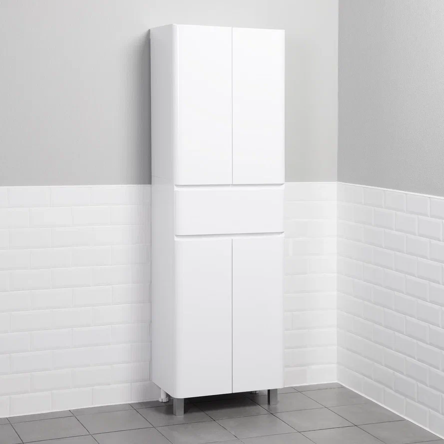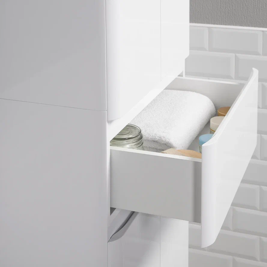 Этот шкаф-пенал обеспечивает достаточное пространство для хранения ванных принадлежностей, косметики и других необходимых вещей, благодаря продуманной организации внутреннего пространства.