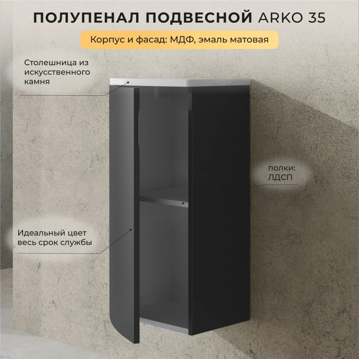 Полупенал Итана Arko 4657825875250 35 см (эмаль графит матовый) подвесной