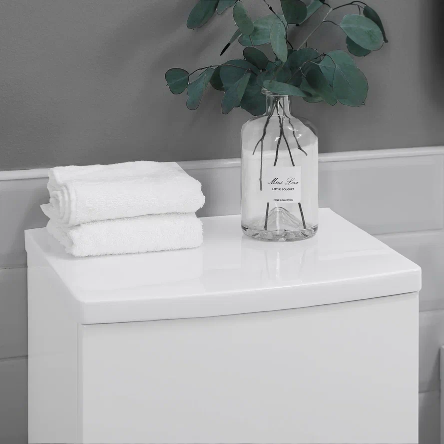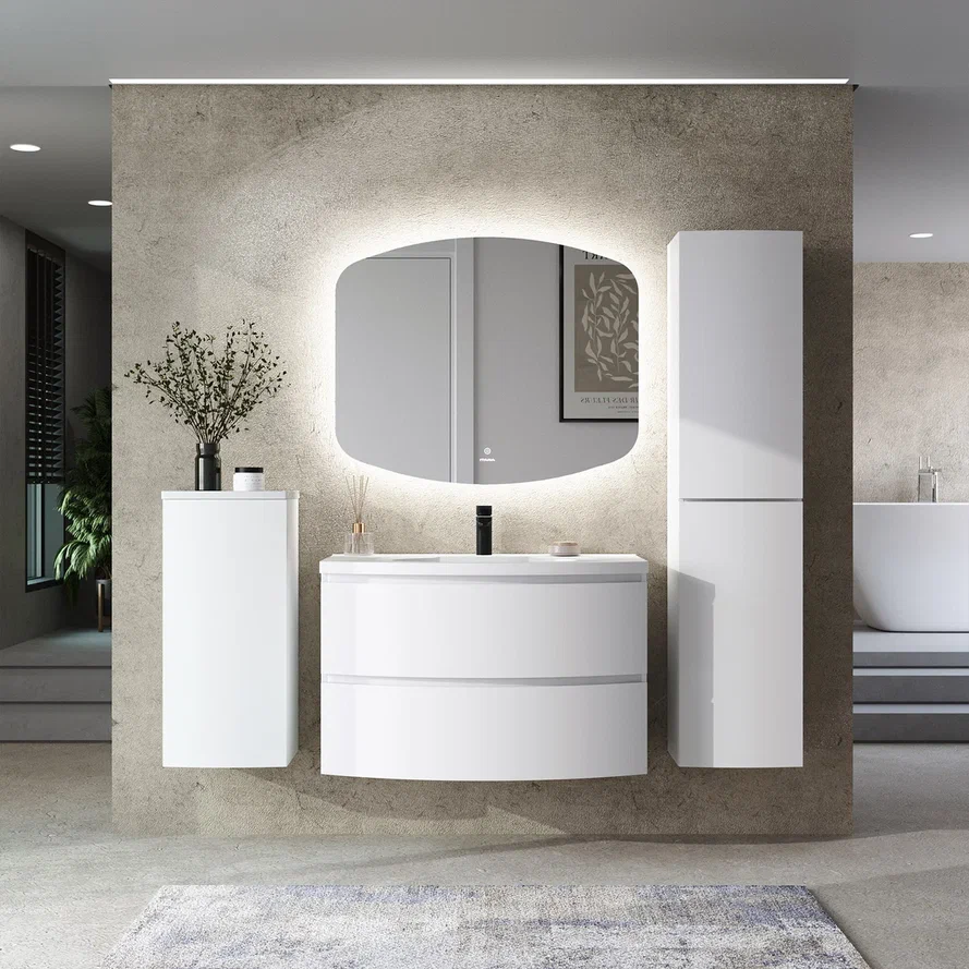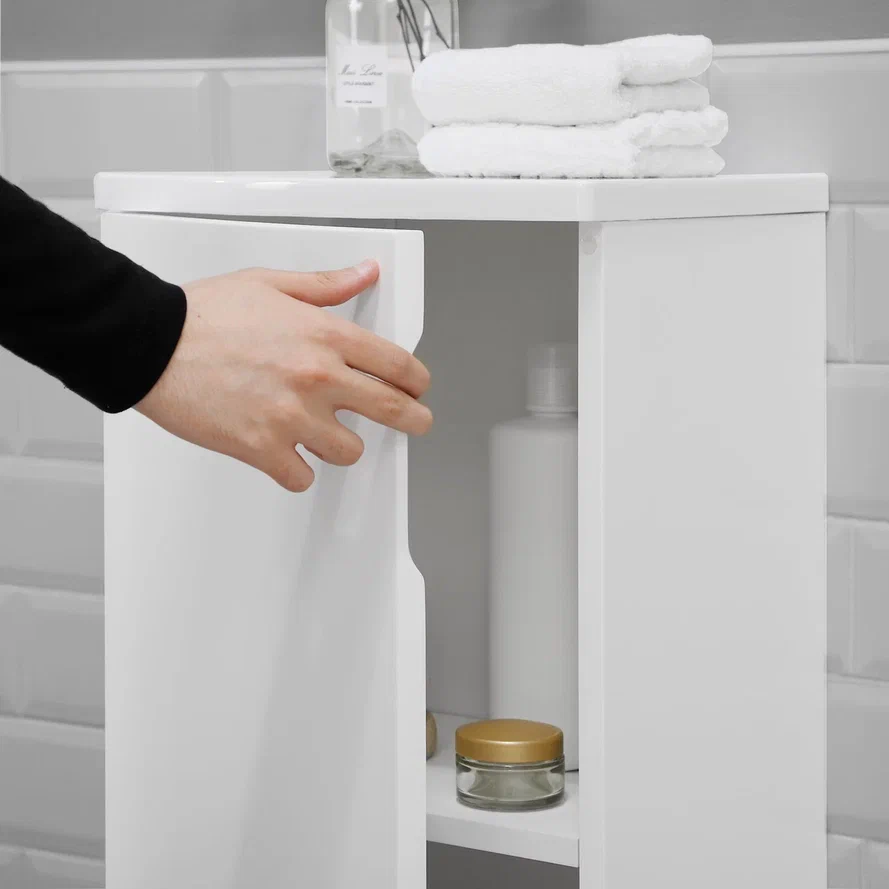 Благодаря своим радиусным фасадам и белому матовому покрытию, он выгодно подчеркнет современный интерьер вашей ванной, добавляя элегантность и чистоту. Компактные размеры пенала 350х300х775 мм позволяют сэкономить пространство, что особенно актуально для небольших ванных комнат.