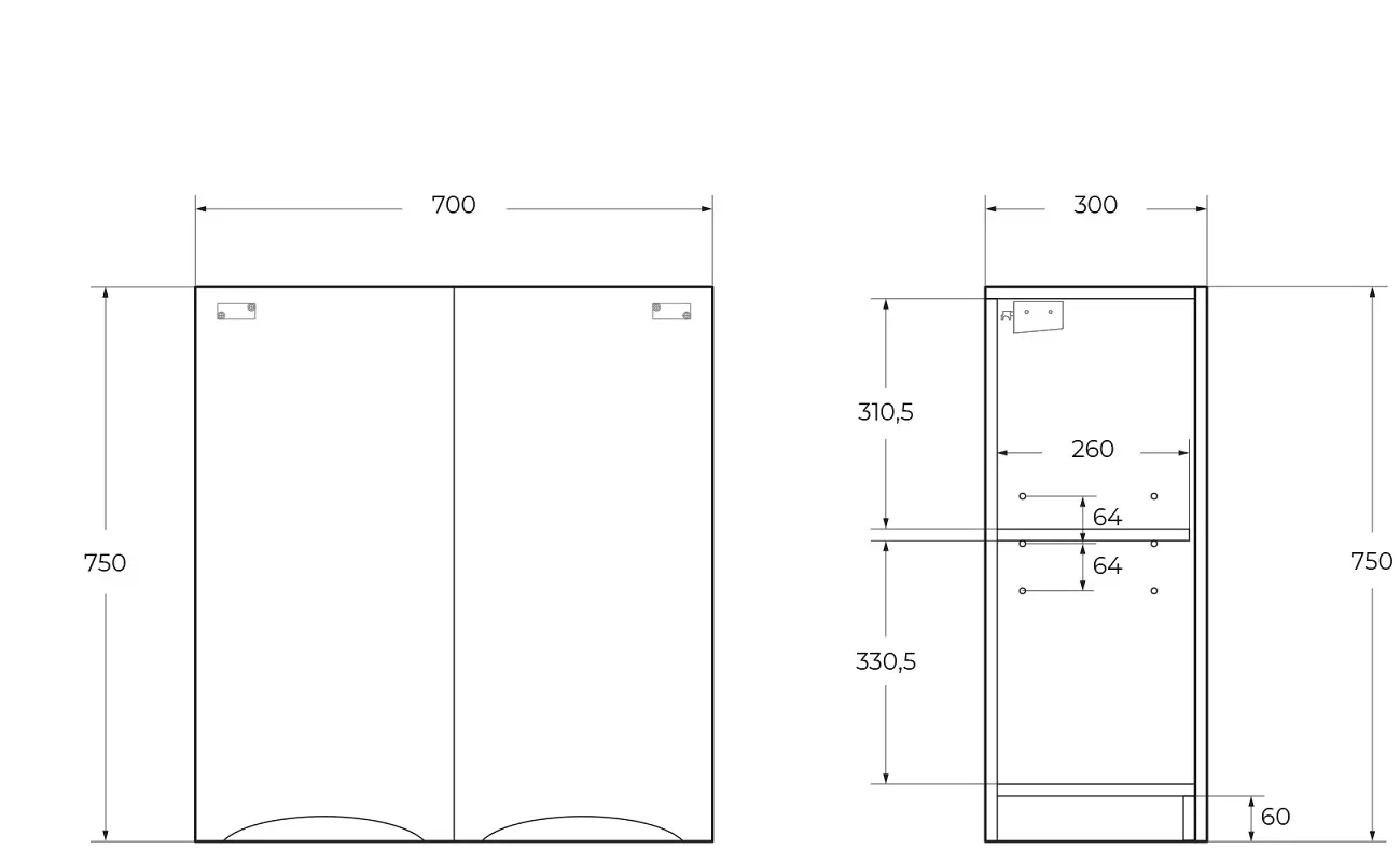 Шкаф BelBagno FLY-MARINO-700-2A-SC-RW-P 70 см (коричневый) подвесной