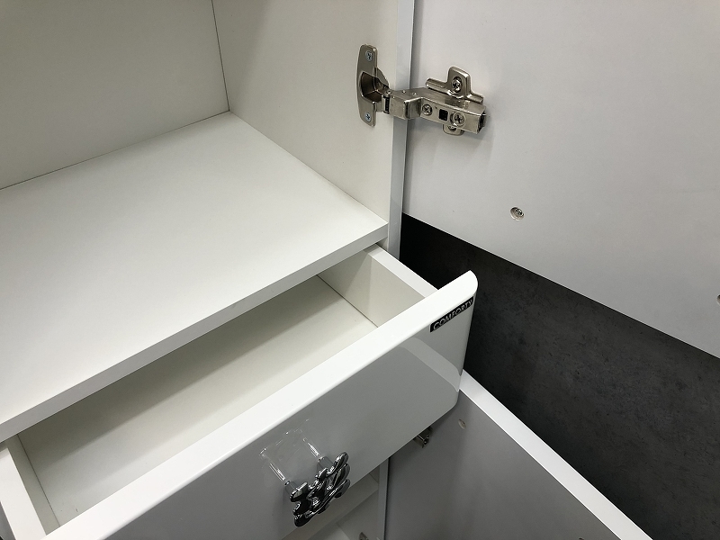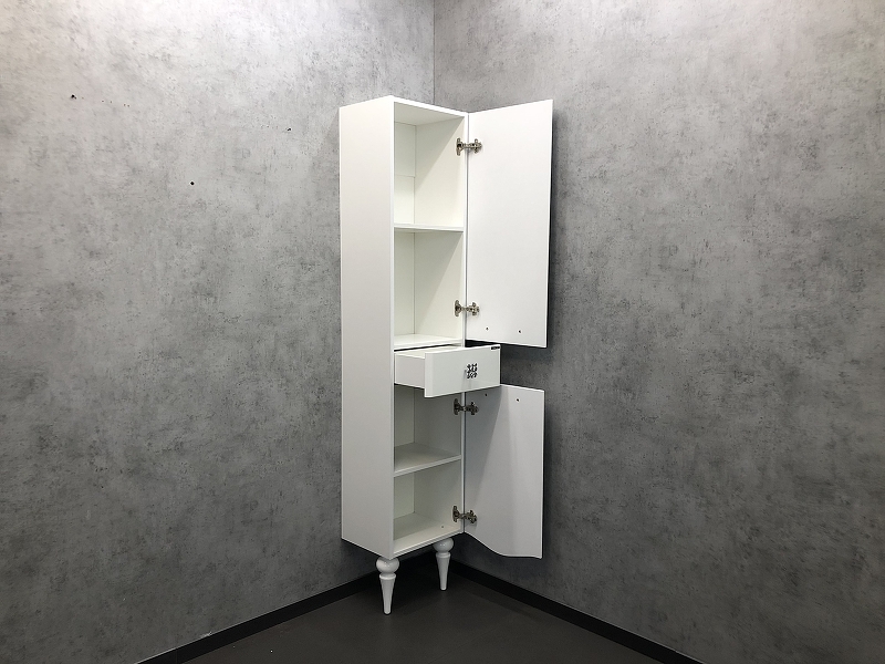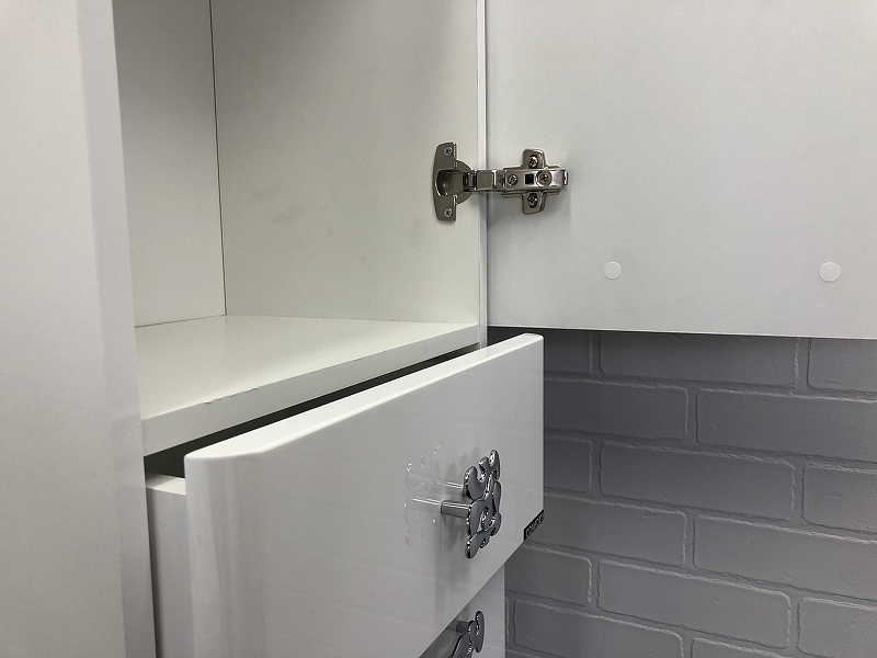 - Створки открываются вправо, оснащены петлями с плавным закрыванием.