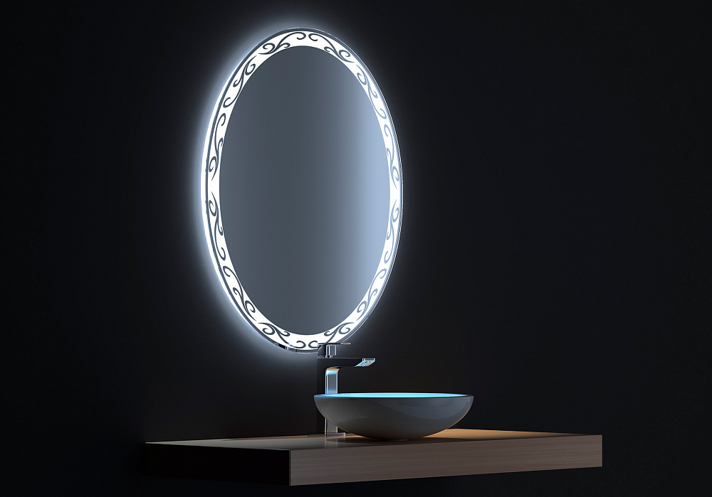 Зеркало для ванной комнаты De Aqua Деко имеет украшено узором, напоминающим тот, который нанесен на зеркала коллекции «Деко» с одним лишь отличием: в первом случае подсветка представляет собой широкую полосу на фоне которой нарисован узор, а во втором - холодный, спокойный свет льется сквозь линии самого узора. LED-подсветка (холодный свет), сенсорный выключатель на раме, универсальный монтаж.