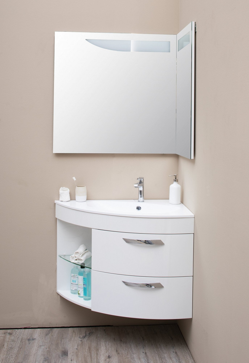 Зеркало для ванной комнаты De Aqua Трио Люкс 90 R (цвет - белый) как полуоткрытая книга, снабженная лаконичной подсветкой, дополнительно к которой можно приобрести подогрев зеркала. Благодаря расположению зеркал, пространство ванной комнаты словно расширяется.