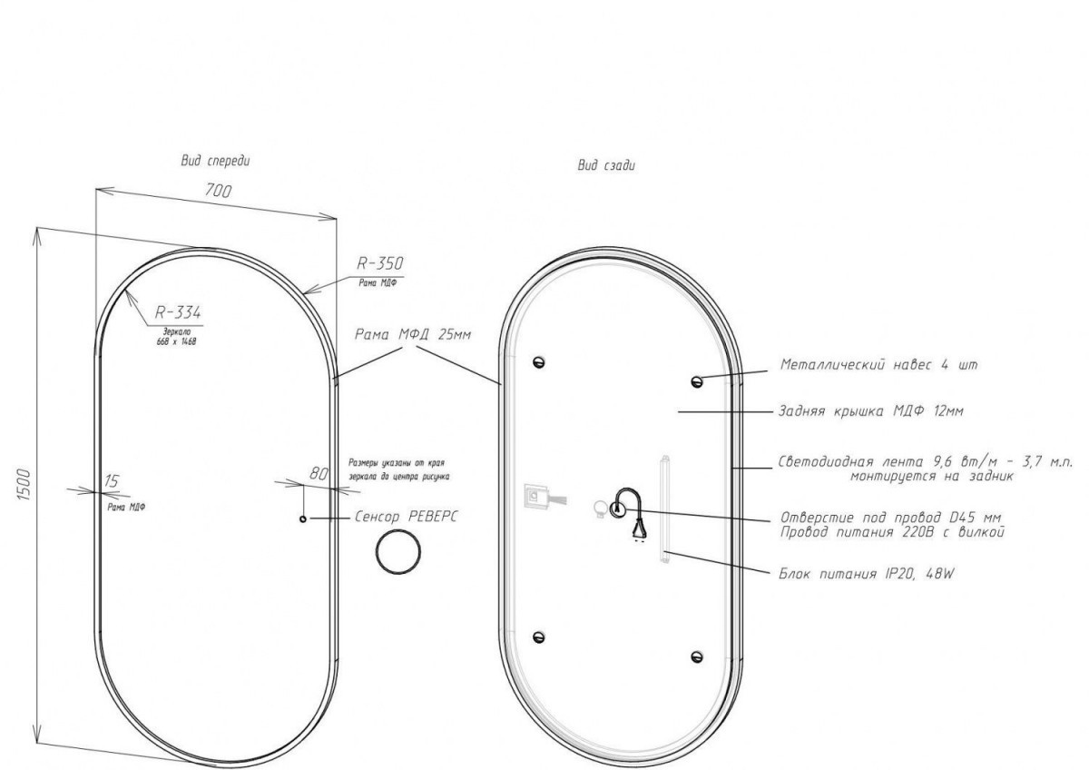 - Оснащение: зеркало, крепеж, коробка, инструкция