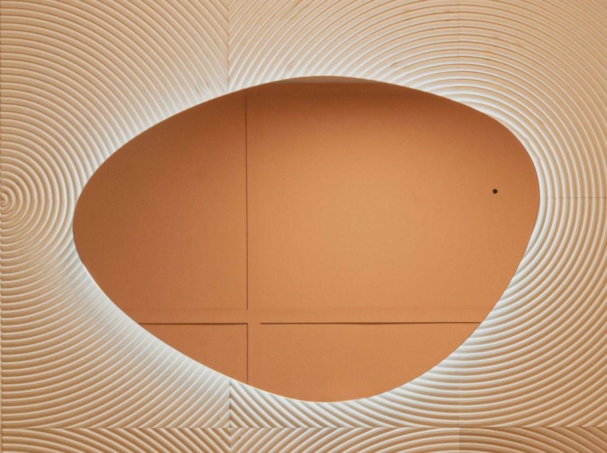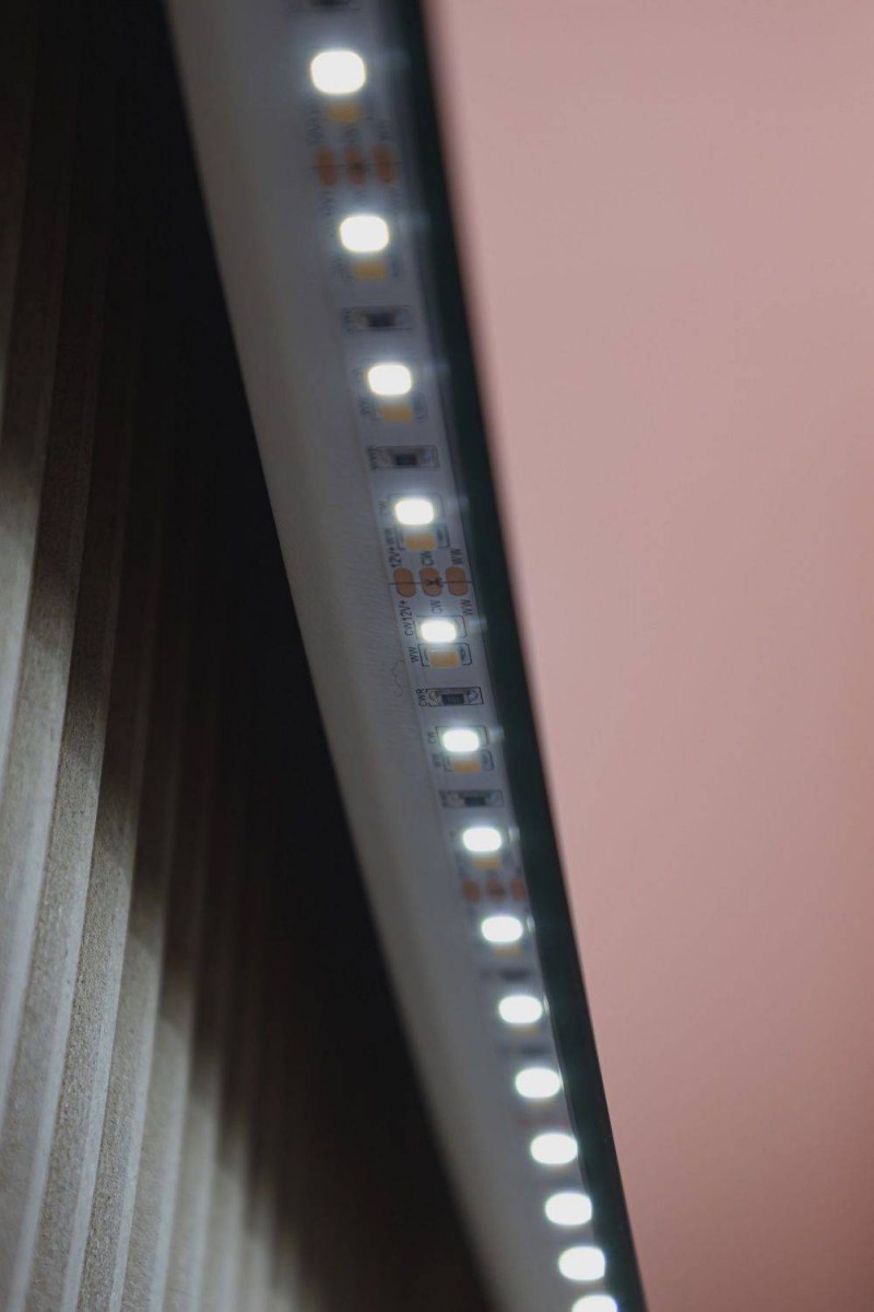 Ореольная подсветка подчеркивает форму зеркала и создает эффект парения.