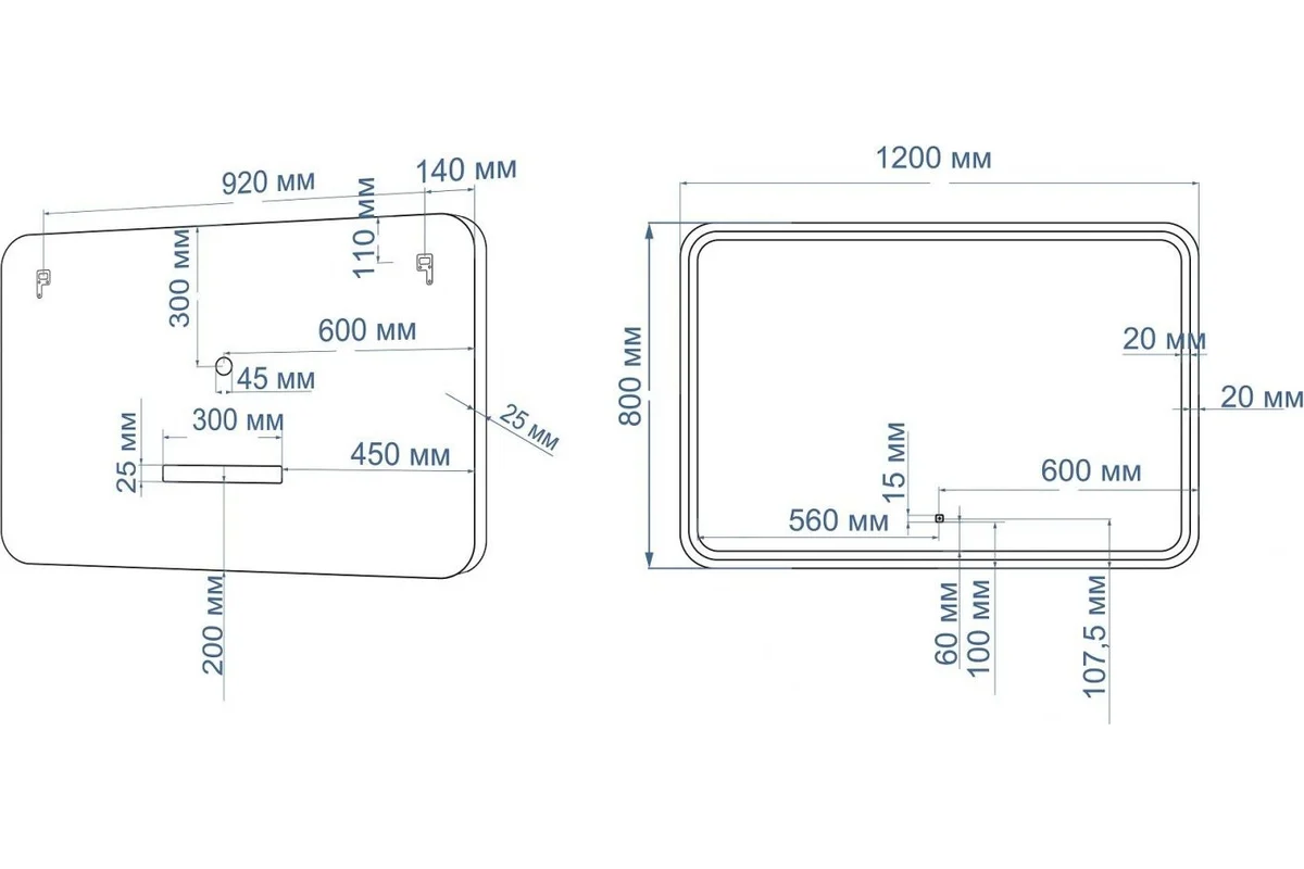- Длина зеркала: 800 мм