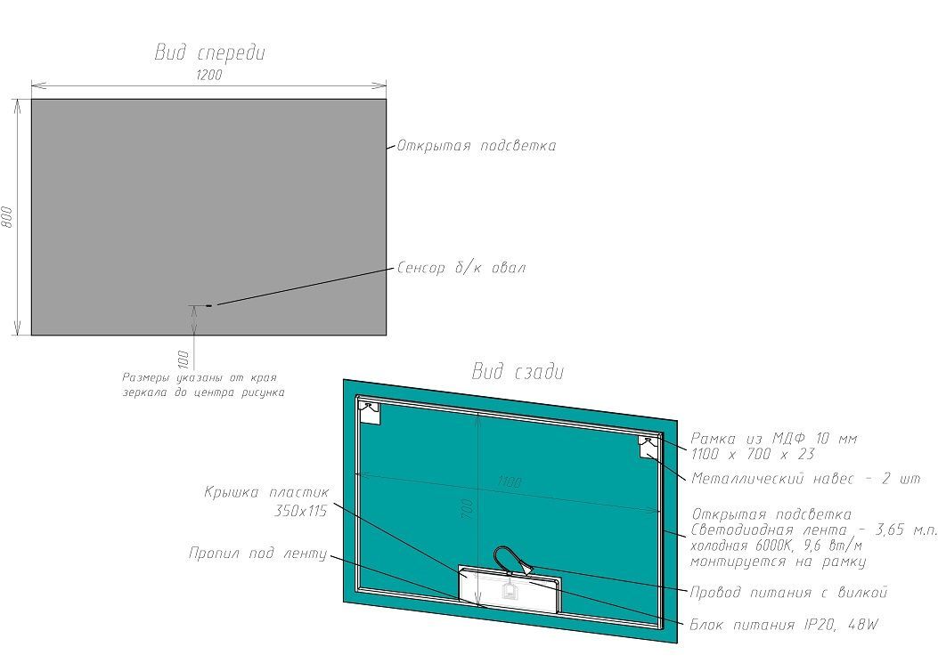 Зеркало Art&Max Perugia AM-Per-1200-800-DS-F 1200*800 мм (LED)