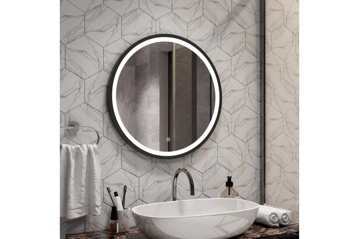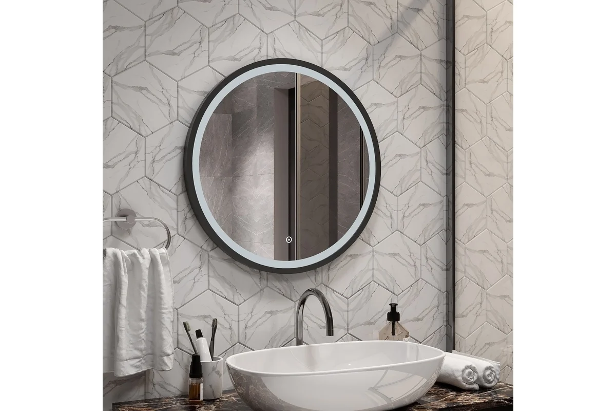 - Круглое зеркало для ванной комнаты оснащенное светодиодной подсветкой с диммером и сенсорным выключателем .