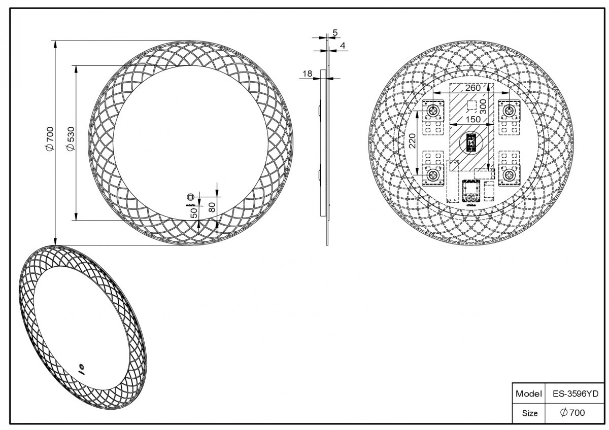 Зеркало Esbano ES-3596YD 700*700 мм (LED, подогрев)