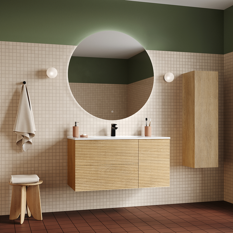 - Добавьте в интерьер вашей ванной лёгкость, стиль и функциональность с круглым зеркалом Bild диаметром 100 см.
