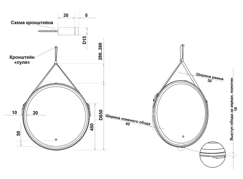 - Оснащение: зеркало, крепеж, коробка, ремень, инструкция