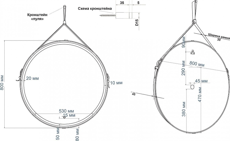 - Оснащение: зеркало, крепеж, коробка, ремень, инструкция