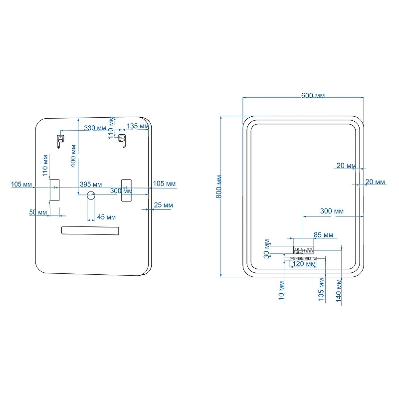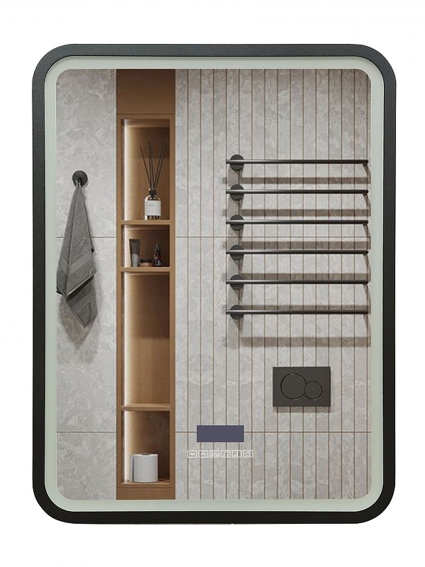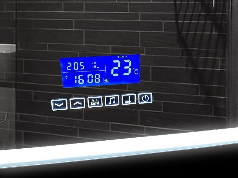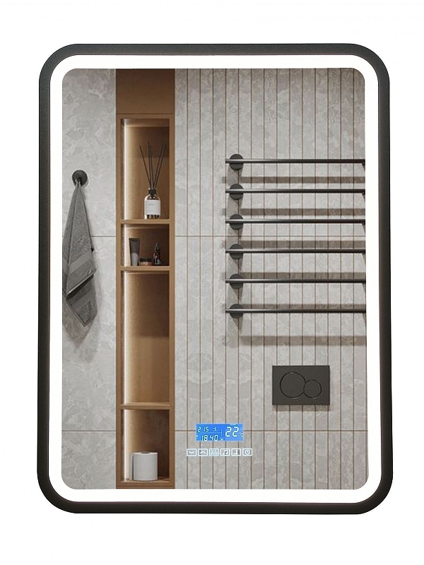 - Зеркало, оснащенное светодиодной LED подсветкой с диммером и многофункциональной панелью