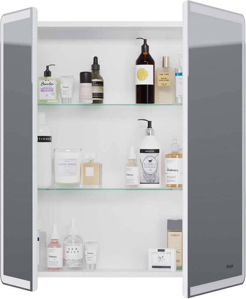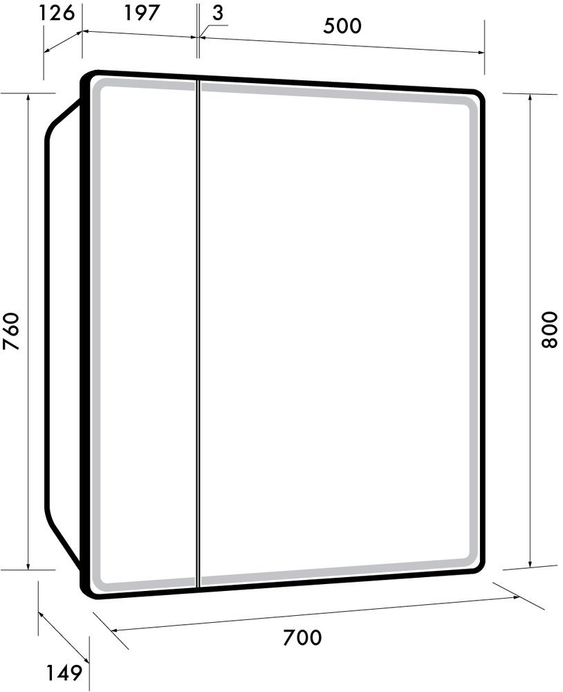 | Название: | Шкаф зеркальный POINT, 70 см, 2 дверцы, 2 стеклянные полки, бесконтактный выключатель, LED-подсветка, электрическая розетка, белый | ||